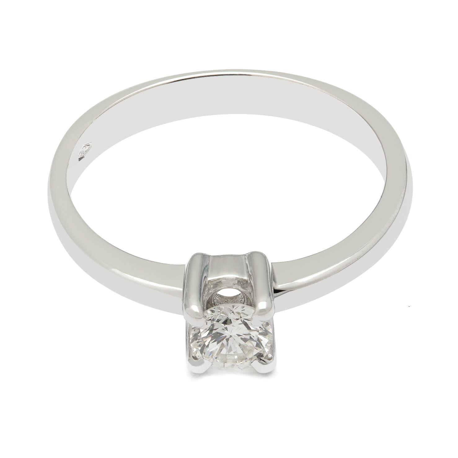 Anello solitario realizzato in oro bianco 18kt e diamante taglio round 0,35ct. Misura 15