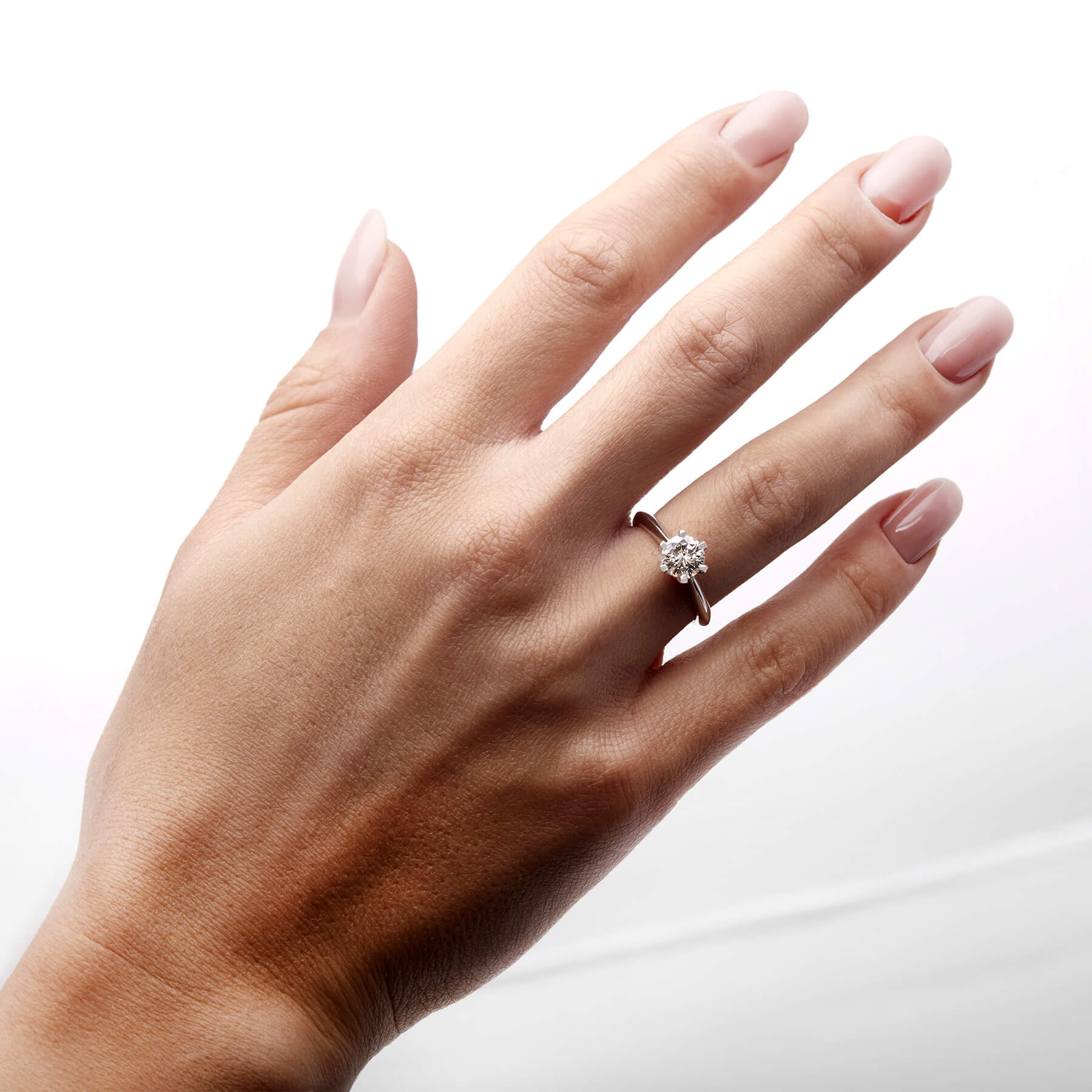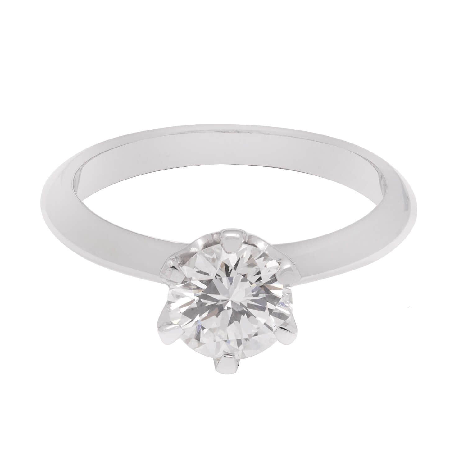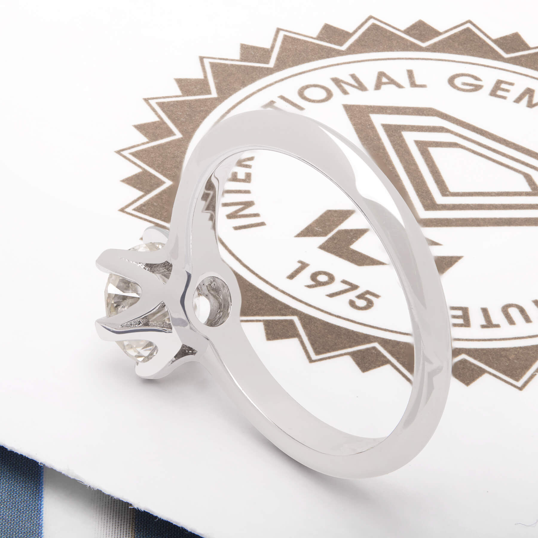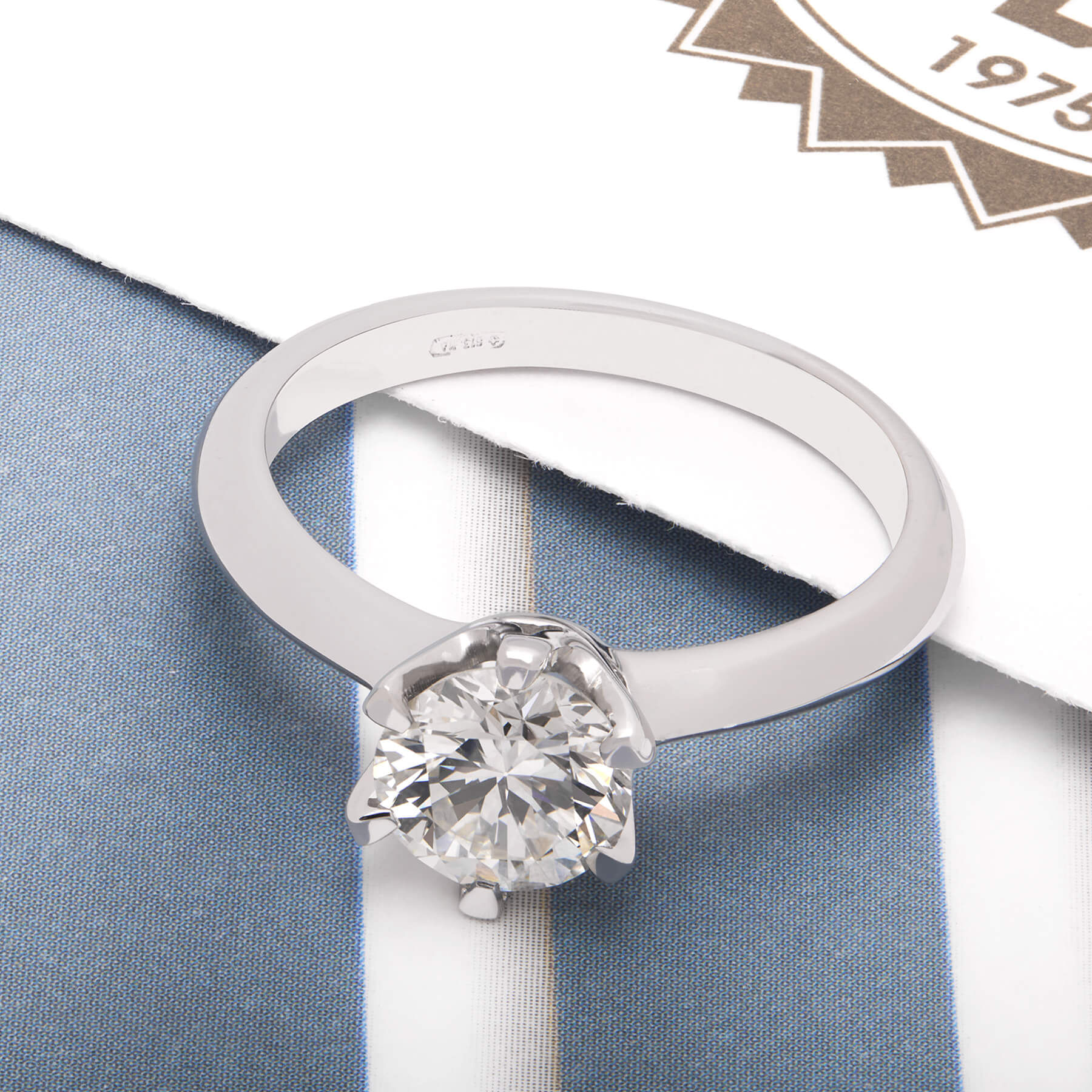 Anello solitario realizzato in oro bianco 18kt e diamante taglio round 1,13ct. Certificato IGI. Misura 12.5. L’articolo è una nuova creazione