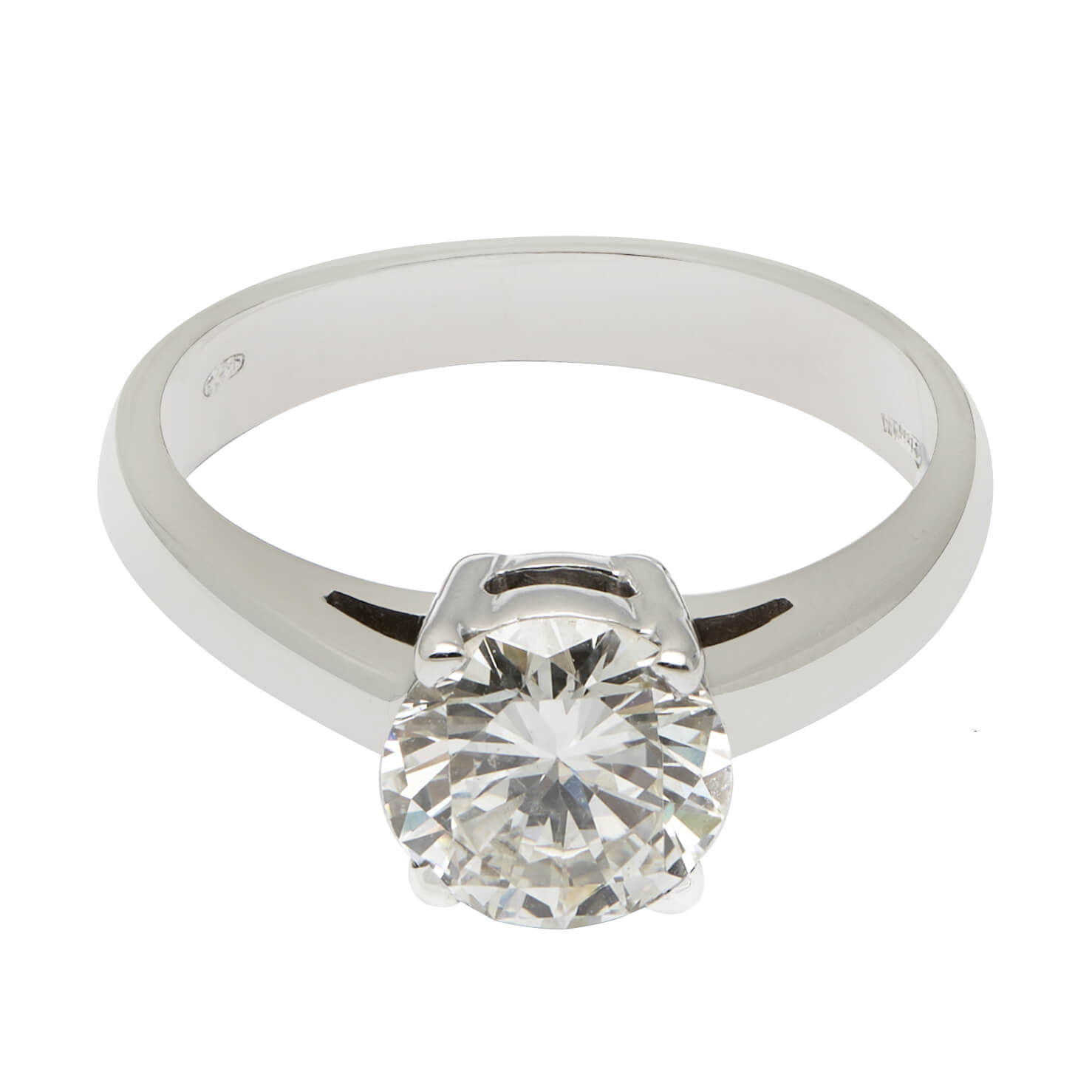 Anello solitario realizzato in oro bianco 18kt e diamante round 1,34ct. Misura 11.5. Certificato CISGEM