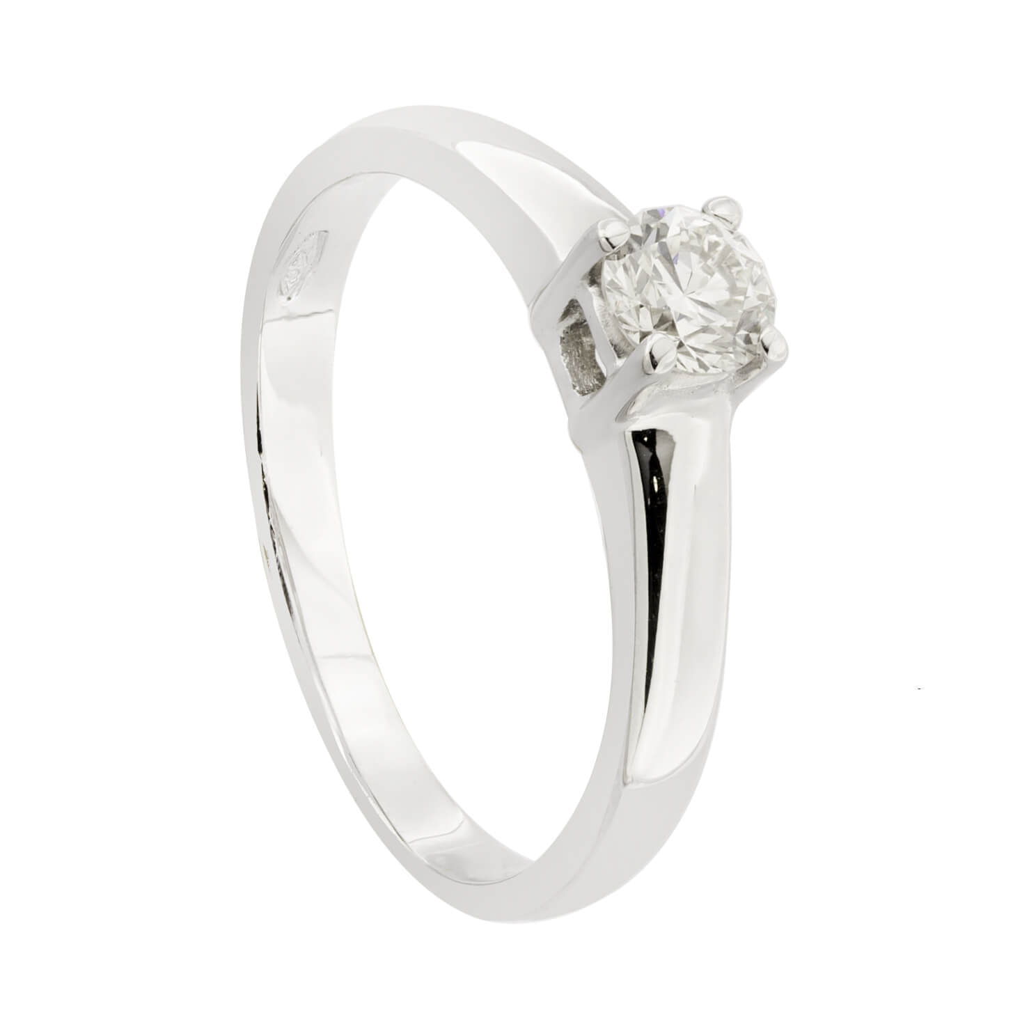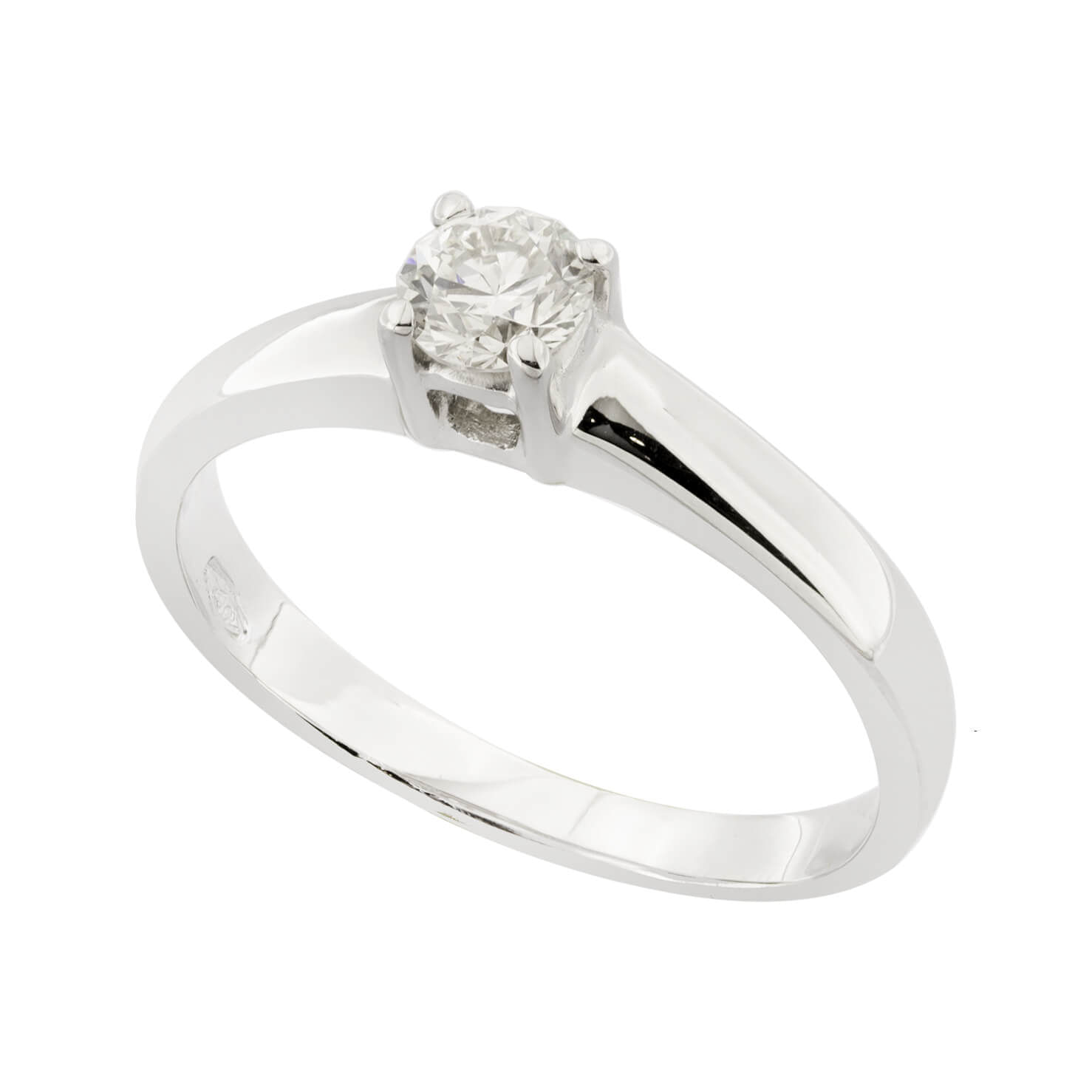 Anello solitario realizzato in oro bianco 18kt con diamante taglio round 0,31ct. Misura 15