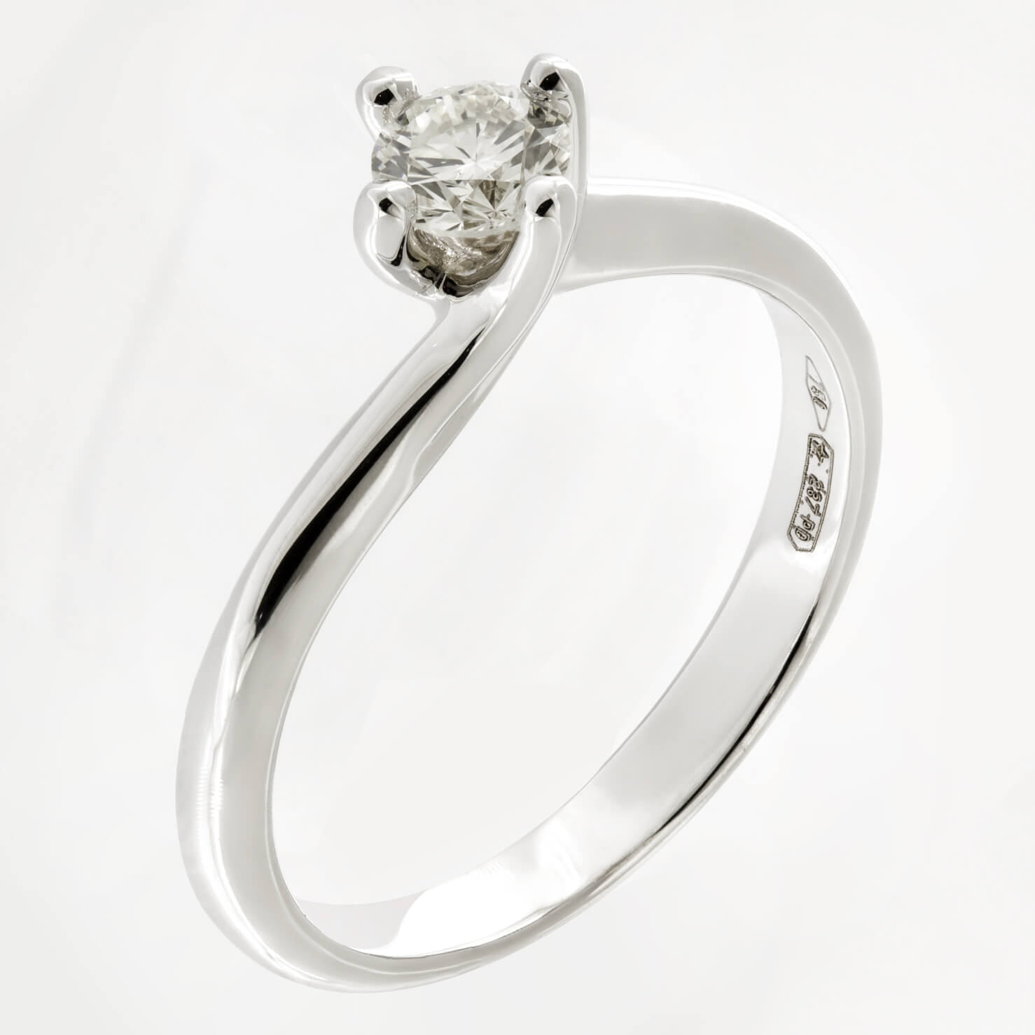 Anello solitario realizzato in oro bianco 18kt con diamante taglio round 0,32ct. L’articolo è una nuova creazione. Misura 13