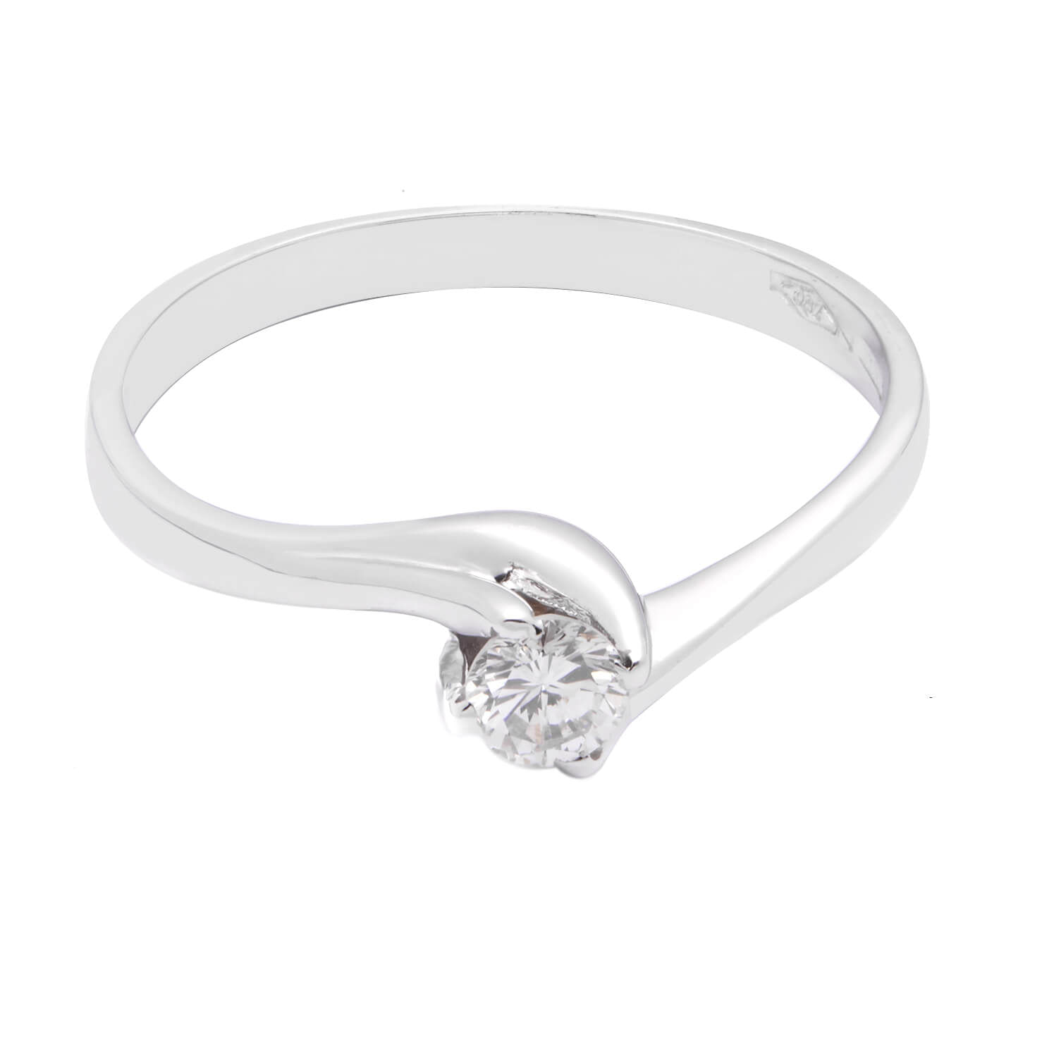 Anello solitario valentino realizzato in oro bianco 18kt con diamante round 0,20ct. Misura 18