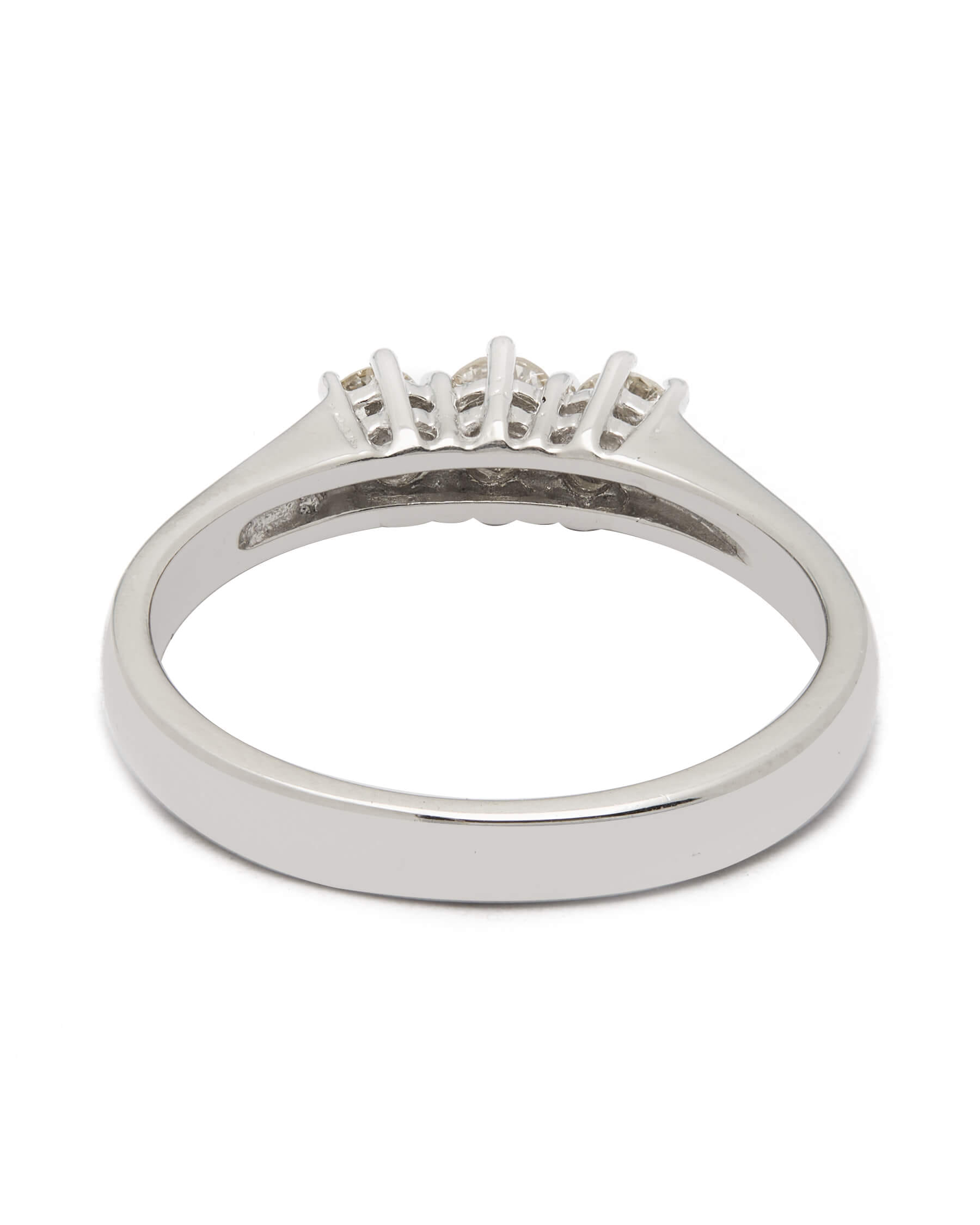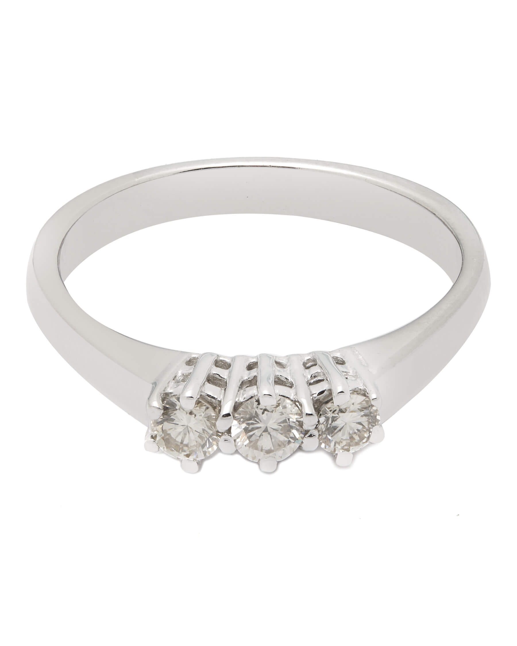 Anello trilogy realizzato in oro bianco 18kt con diamanti 0,30ct tot. Misura 14.5