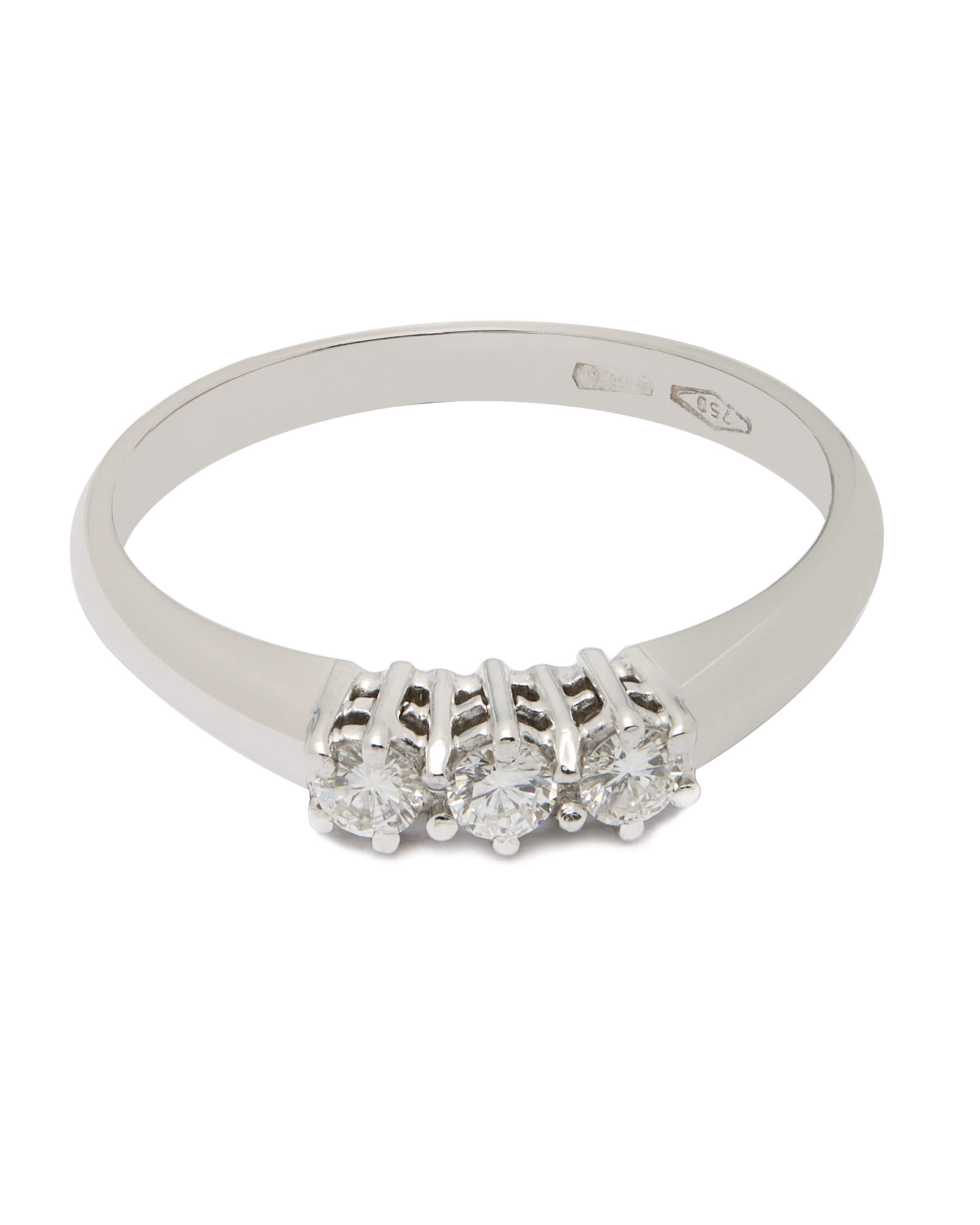 Anello trilogy realizzato in oro bianco 18kt e diamanti taglio round 0,21ct tot. Misura 10