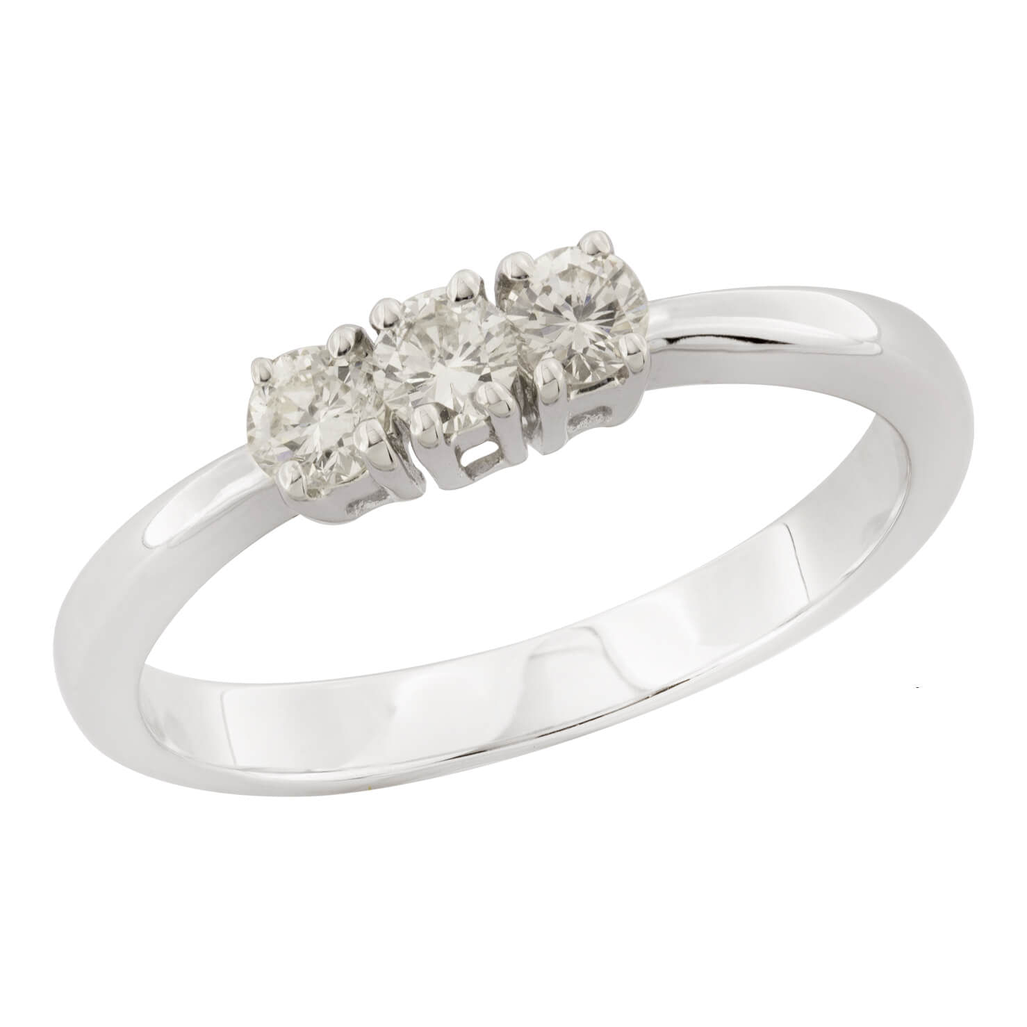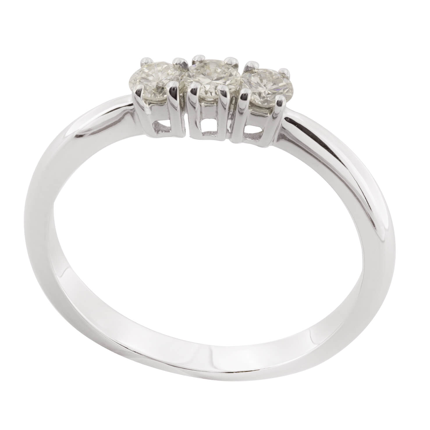 Anello Trilogy realizzato in oro bianco 18kt e diamanti taglio round 0,30ct tot. L’articolo è una nuova creazione.