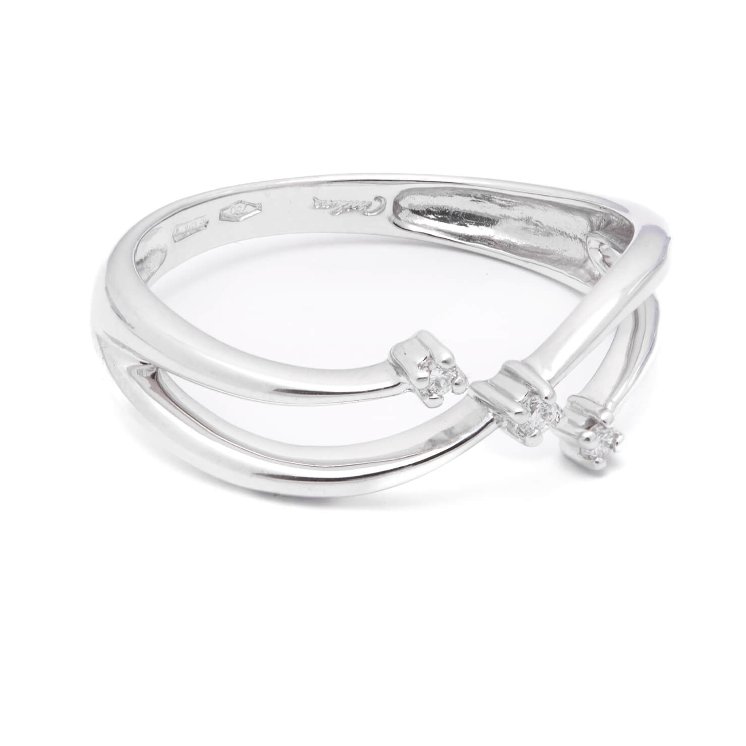 Anello trilogy Miluna realizzato in oro bianco 18kt e diamanti taglio round 0,045ct tot. Misura 14