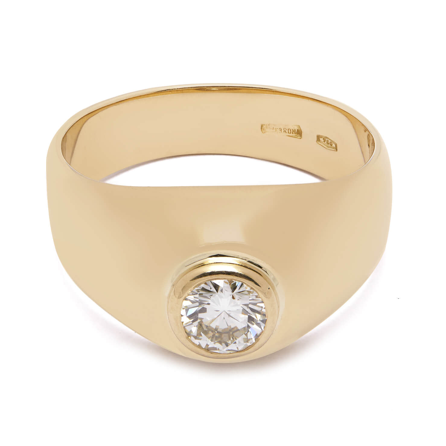 Anello uomo realizzato in oro giallo 18kt e diamante round 0,45ct. Misura 18,5