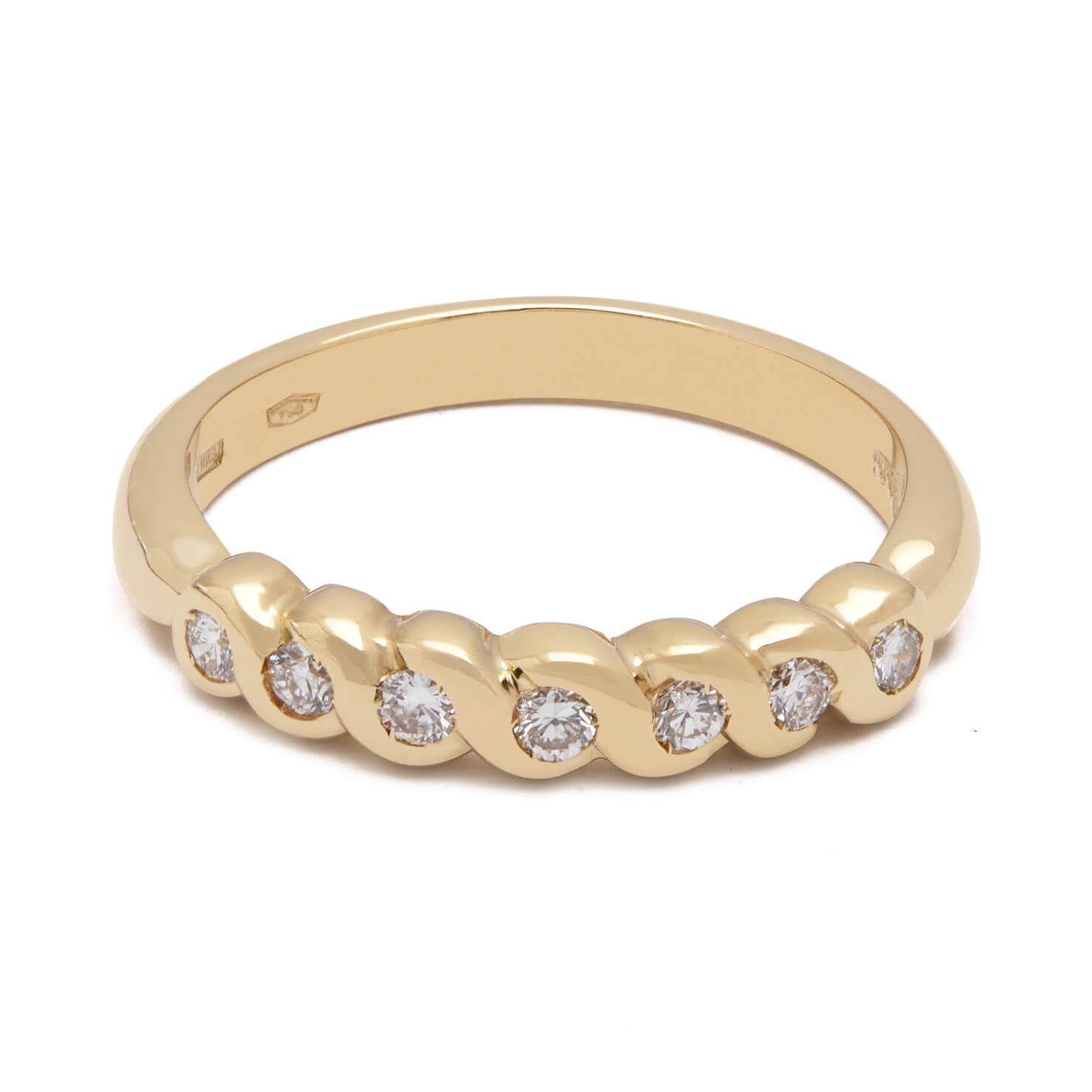 Anello veretta Damiani realizzato in oro giallo 18kt e diamanti round 0,175ct tot. Misura 12