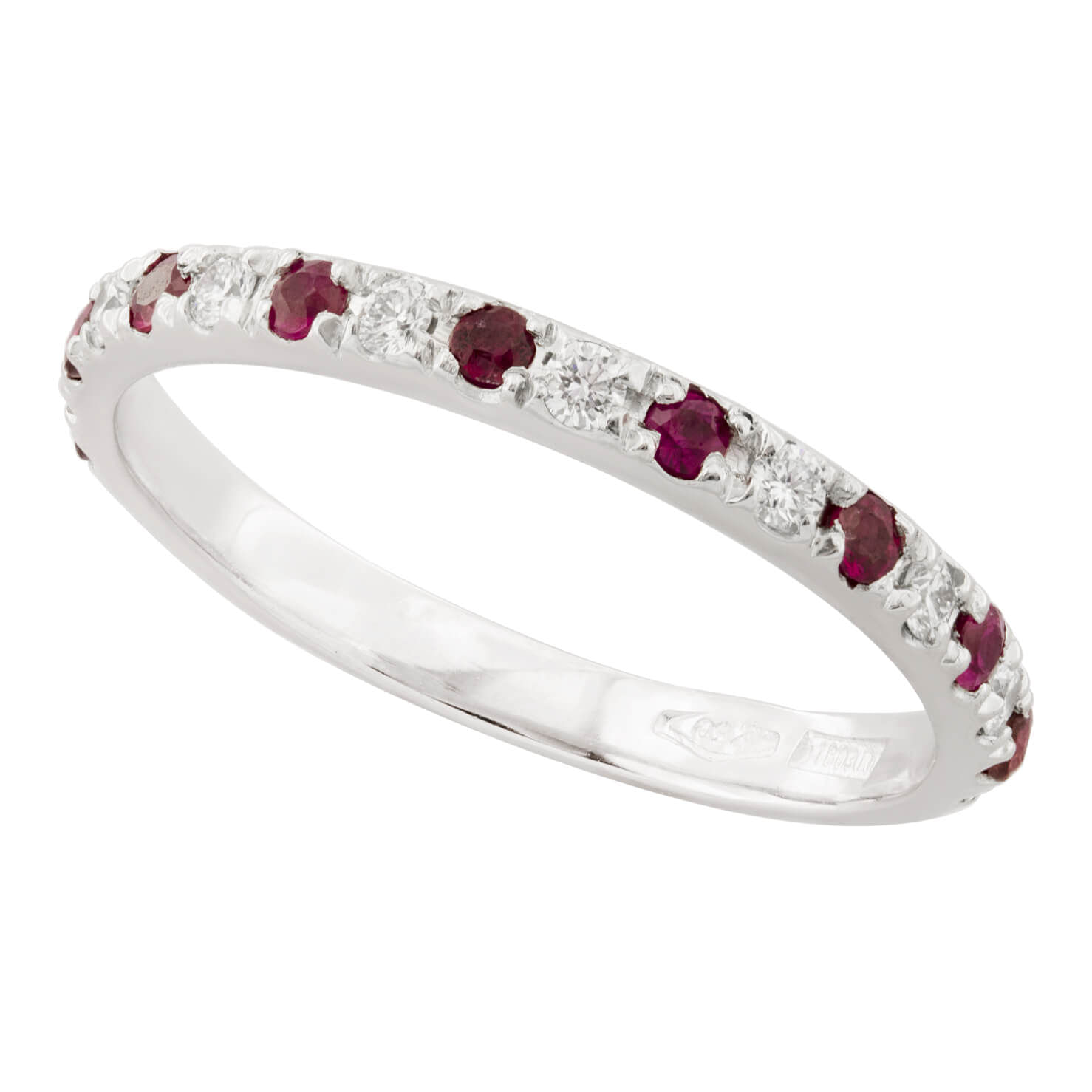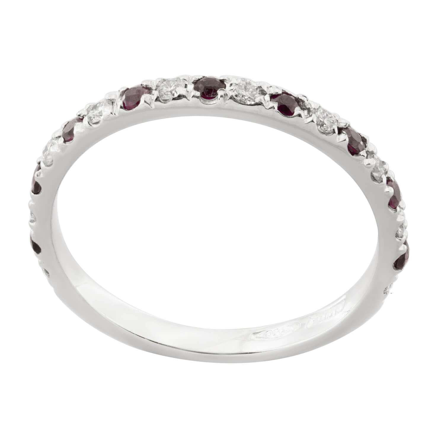 Anello veretta in oro bianco con rubini 0,18ct tot e diamanti 0,14ct tot