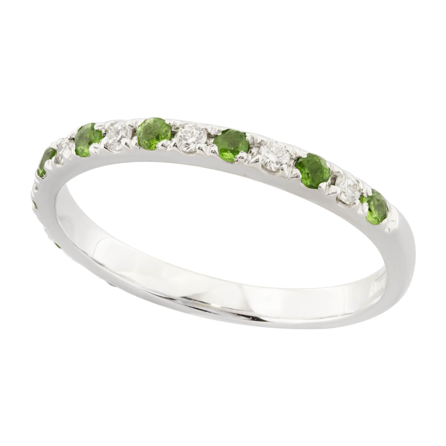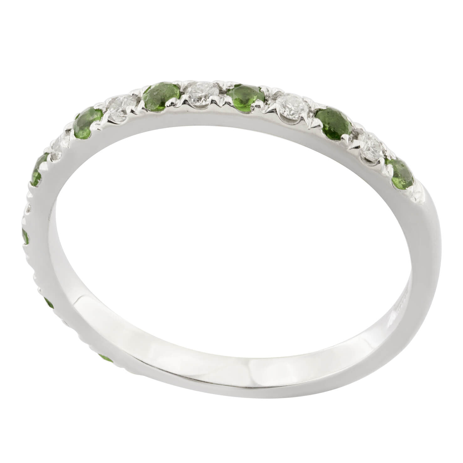 Anello veretta in oro bianco con smeraldi 0,18ct tot e diamanti 0,14ct tot