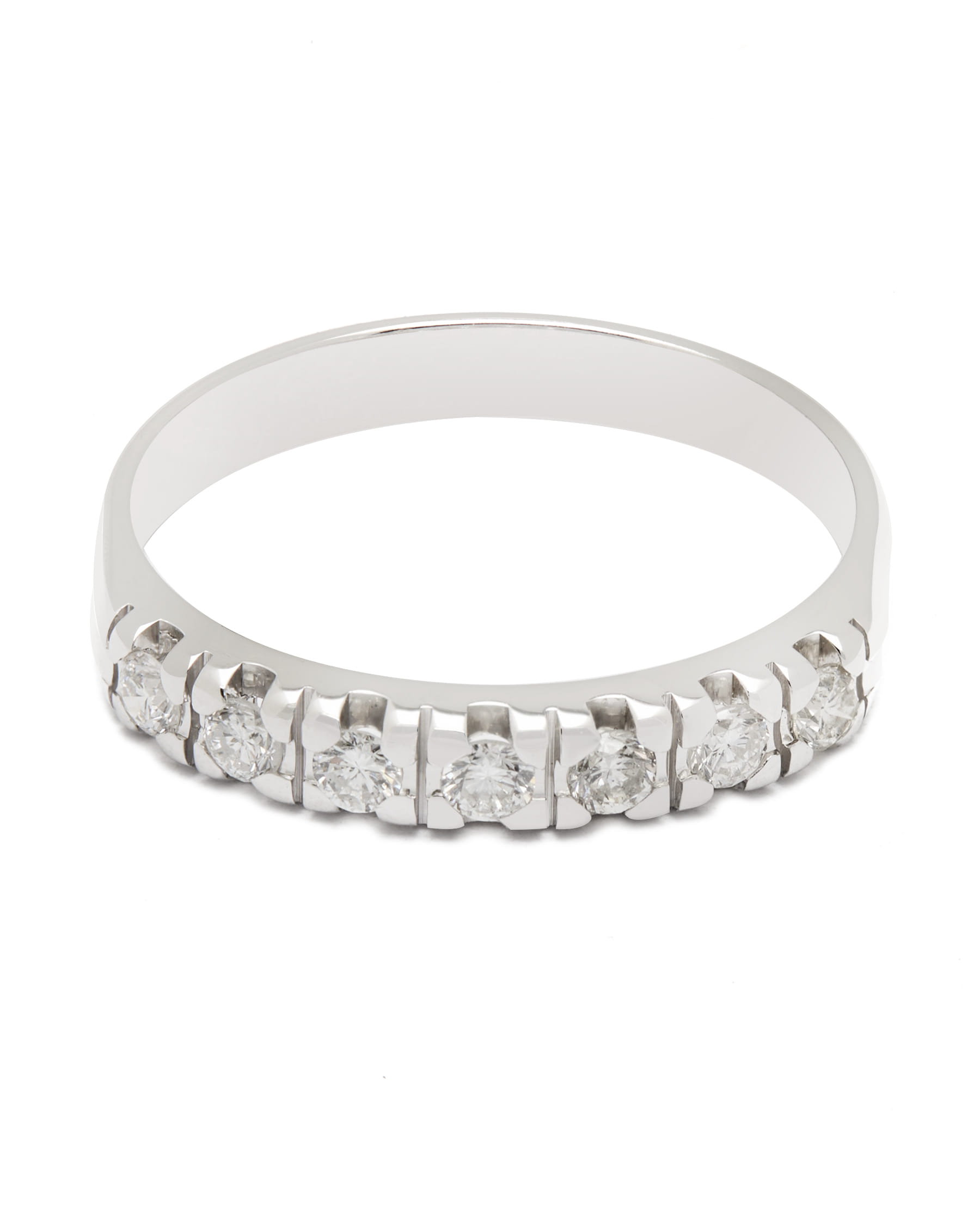 Anello veretta realizzato in oro bianco 18kt e diamanti taglio round 0,28ct. Misura 15