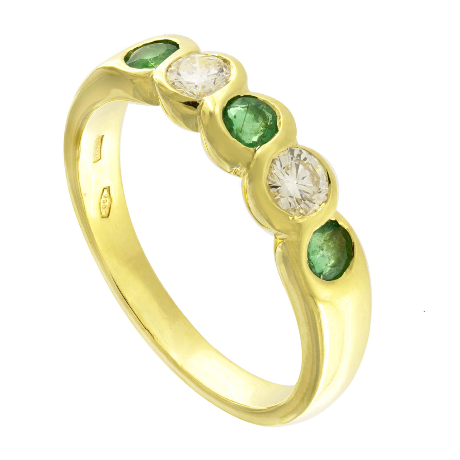 Anello Veretta in oro giallo con diamanti 0,50ct e smeraldi 0,30ct