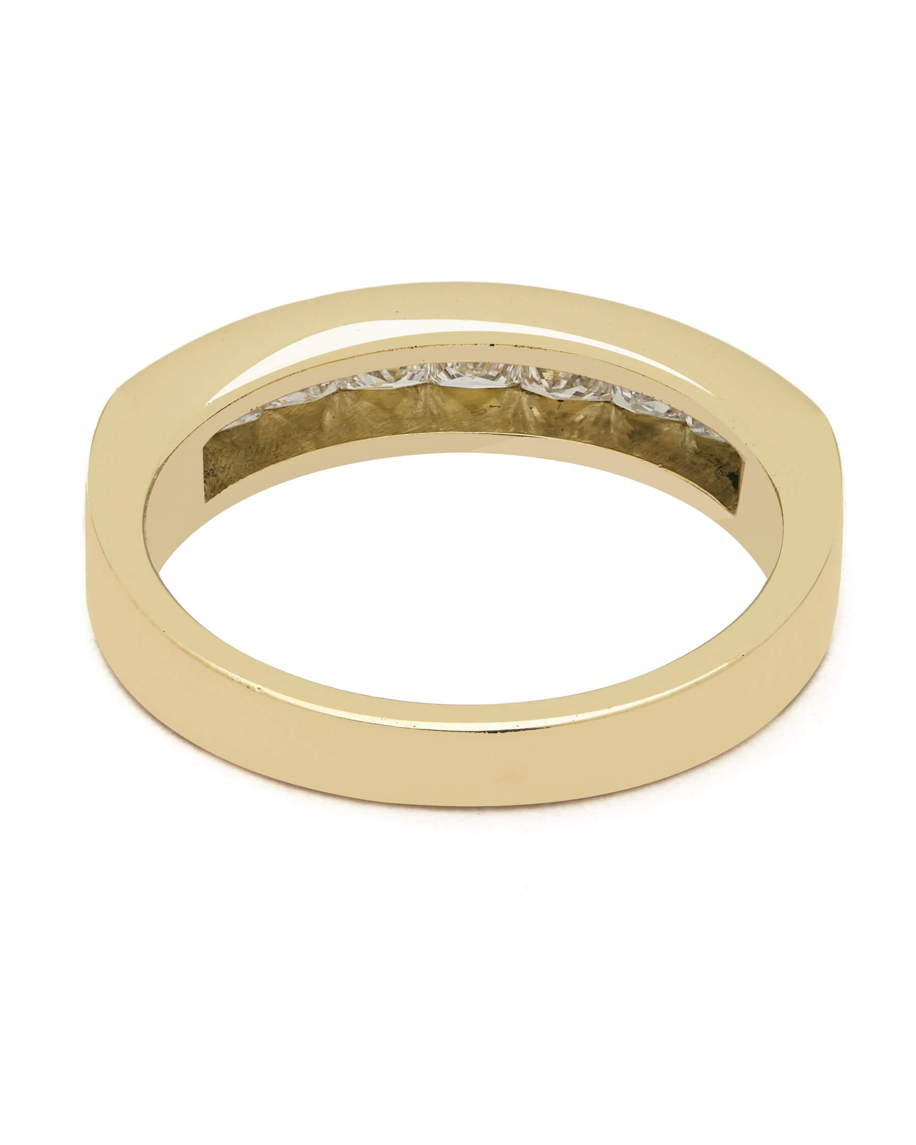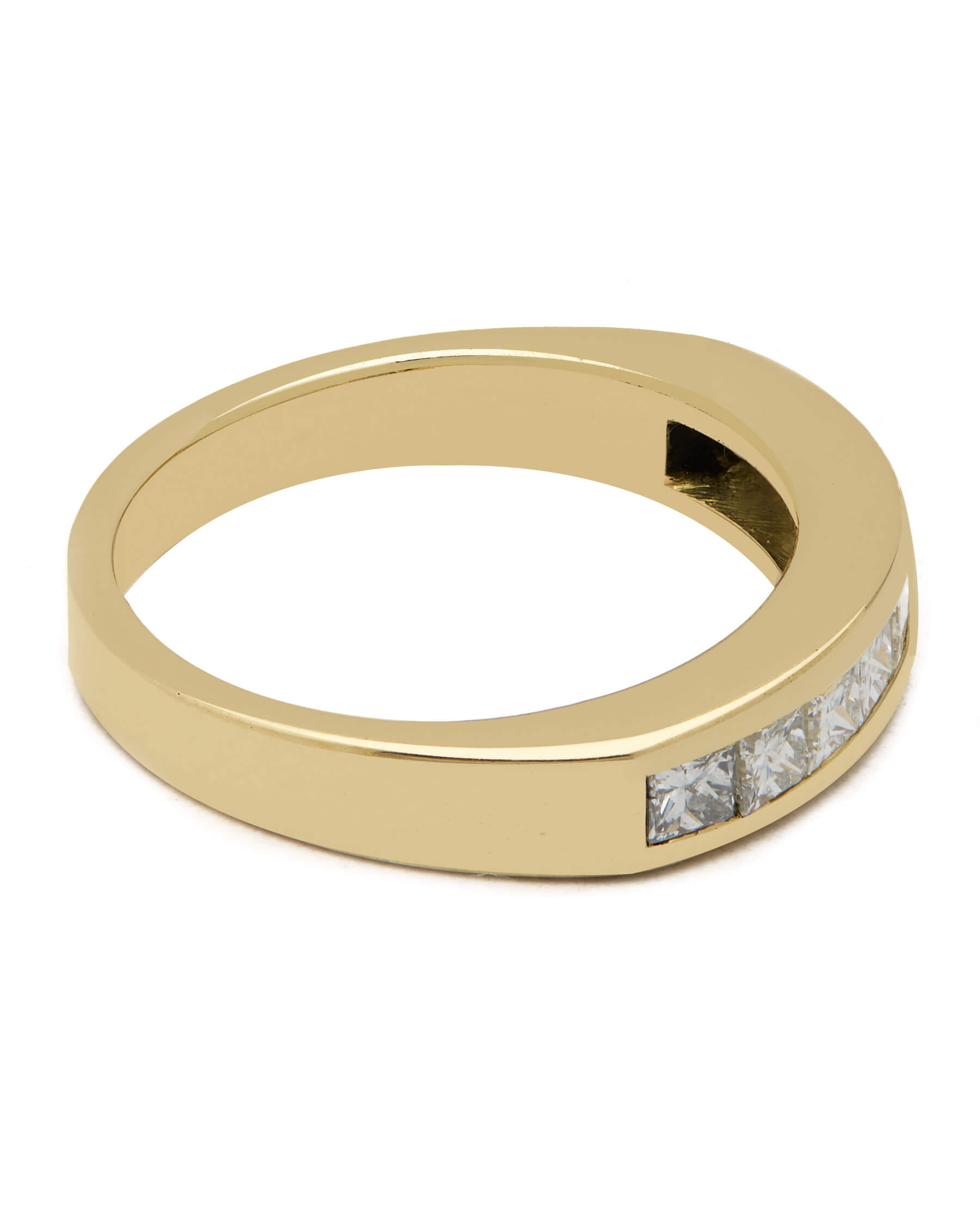 Anello veretta realizzato in oro giallo 18kt con diamanti taglio princess a binario 0,90ct tot. Misura 10