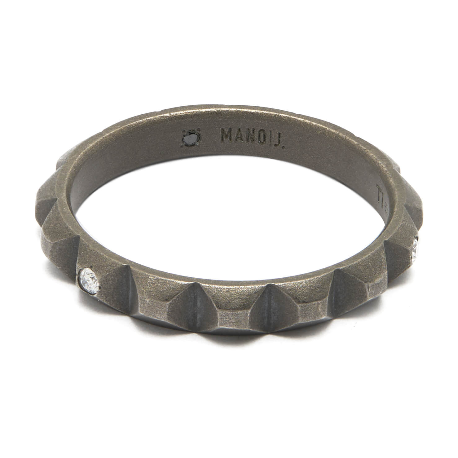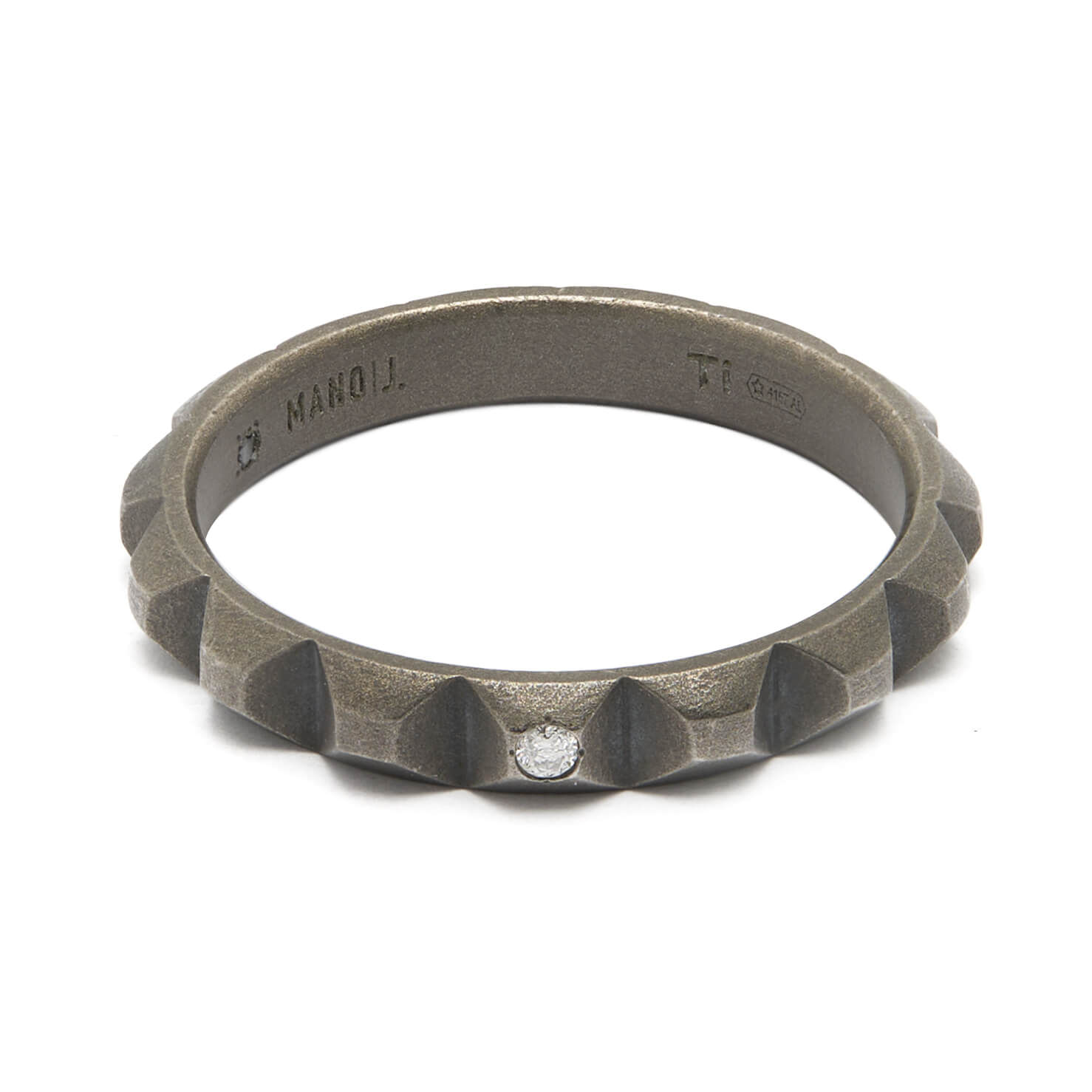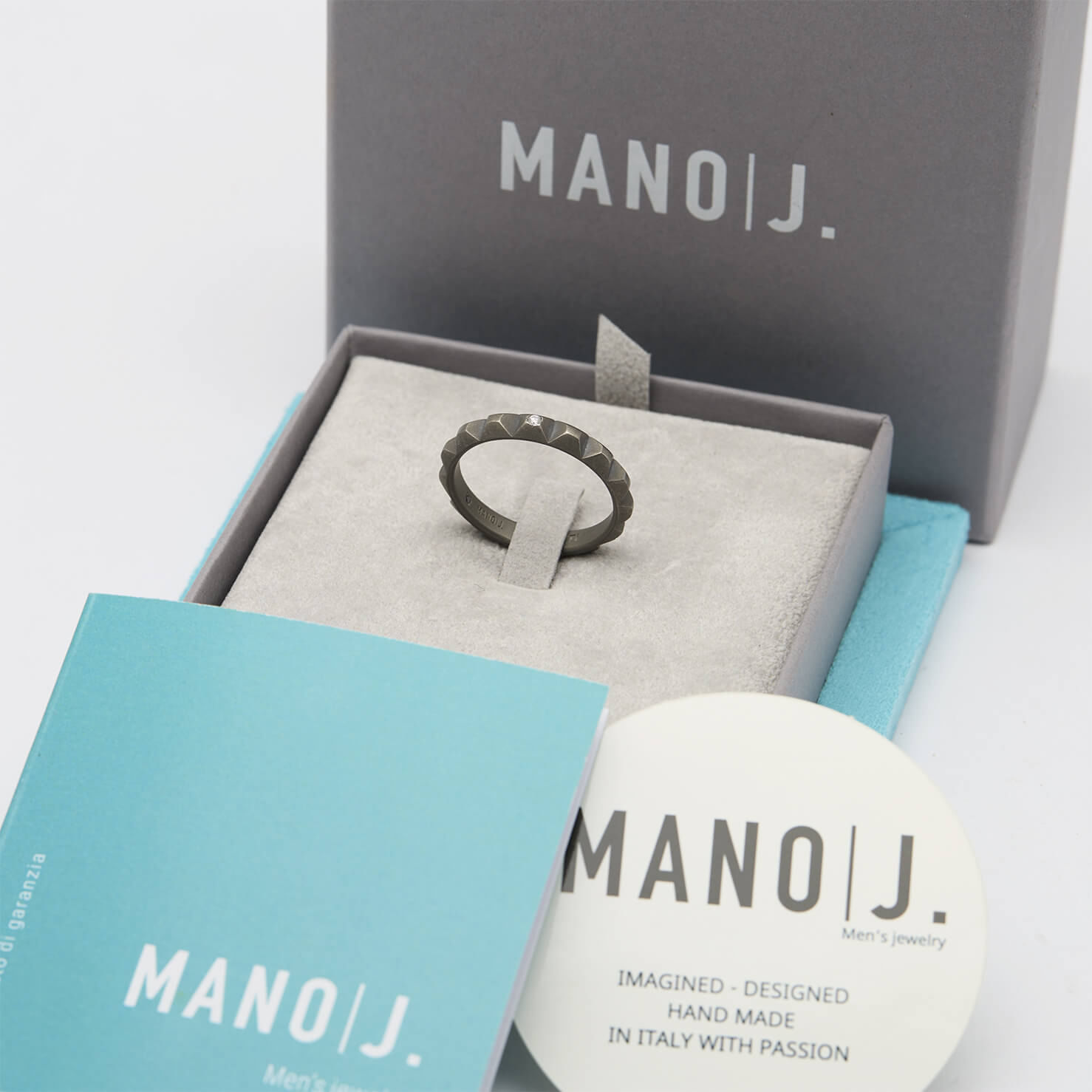Anello veretta Mano J. linea Watt in titanio e diamanti