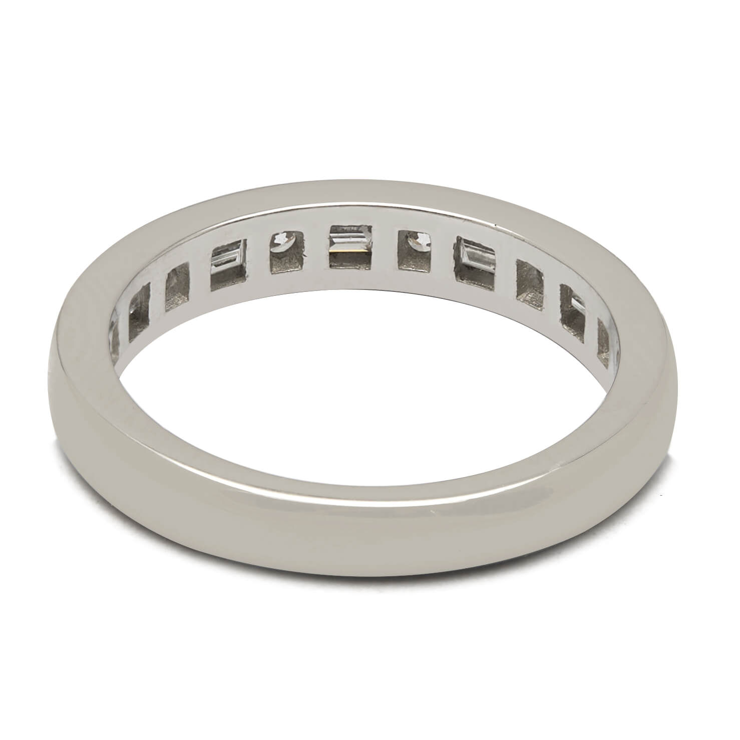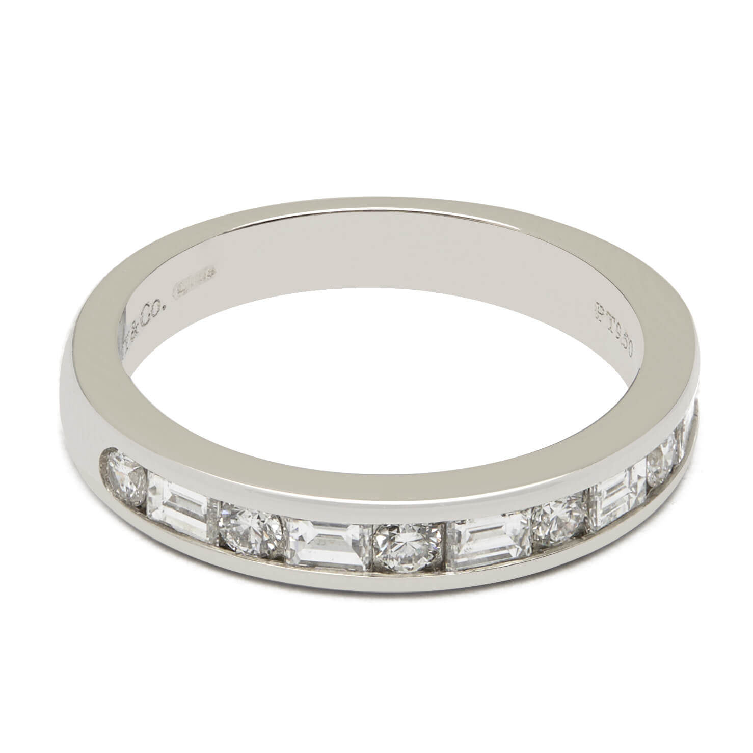Anello veretta Tiffany setting in platino con diamanti taglio round e baguette