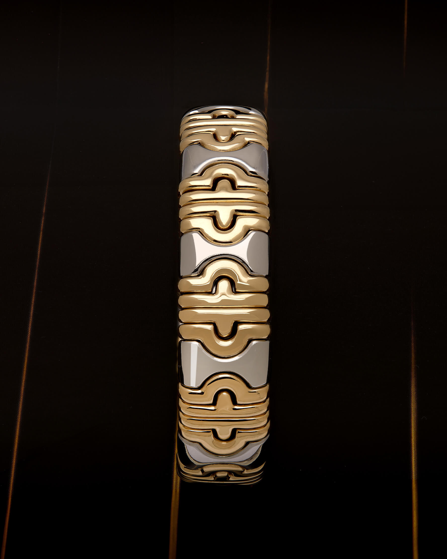 Bracciale Bulgari Parentesi realizzato in acciaio e oro 18kt. Misura da 14 a 19cm