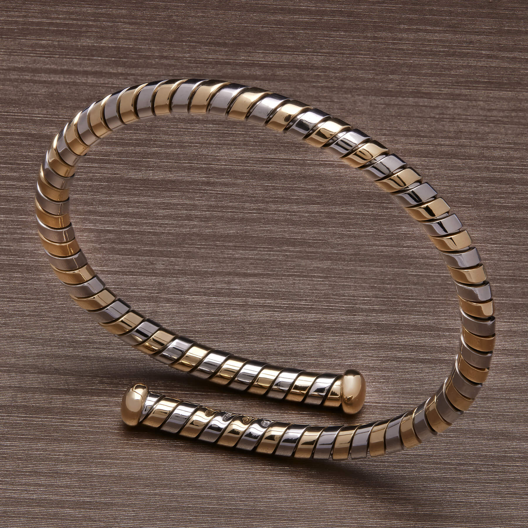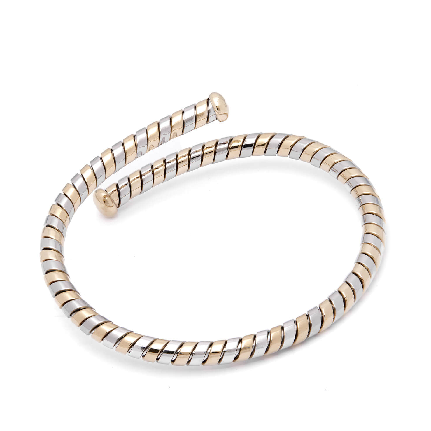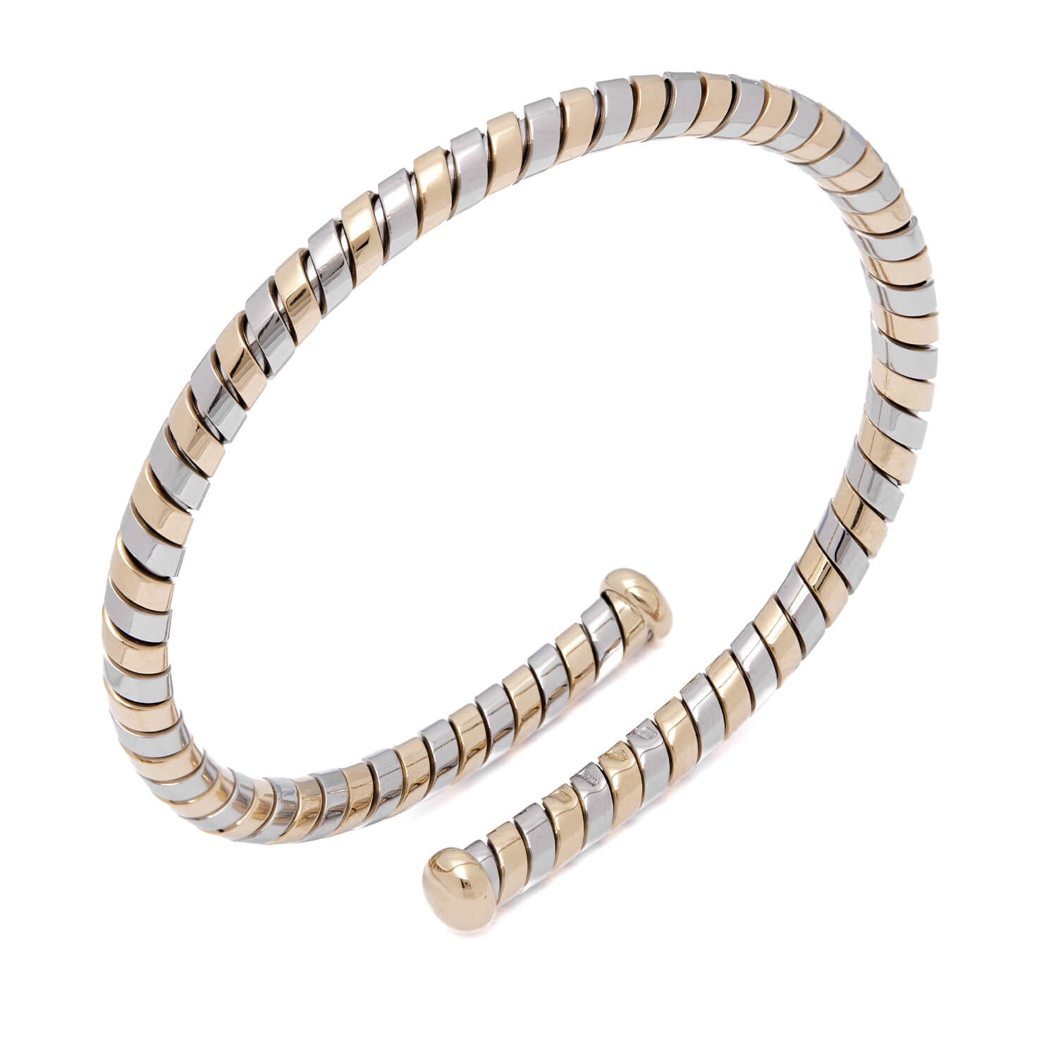 Bracciale Bulgari tubogas contrariè realizzato in acciaio e oro giallo 18kt. Misura 16