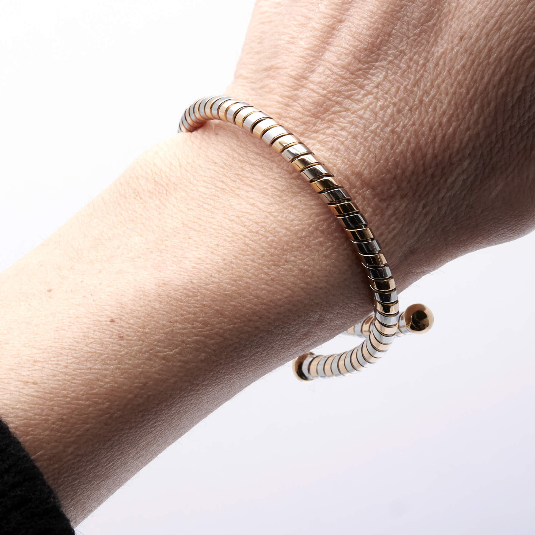 Bracciale Bulgari tubogas contrariè in acciaio e oro giallo