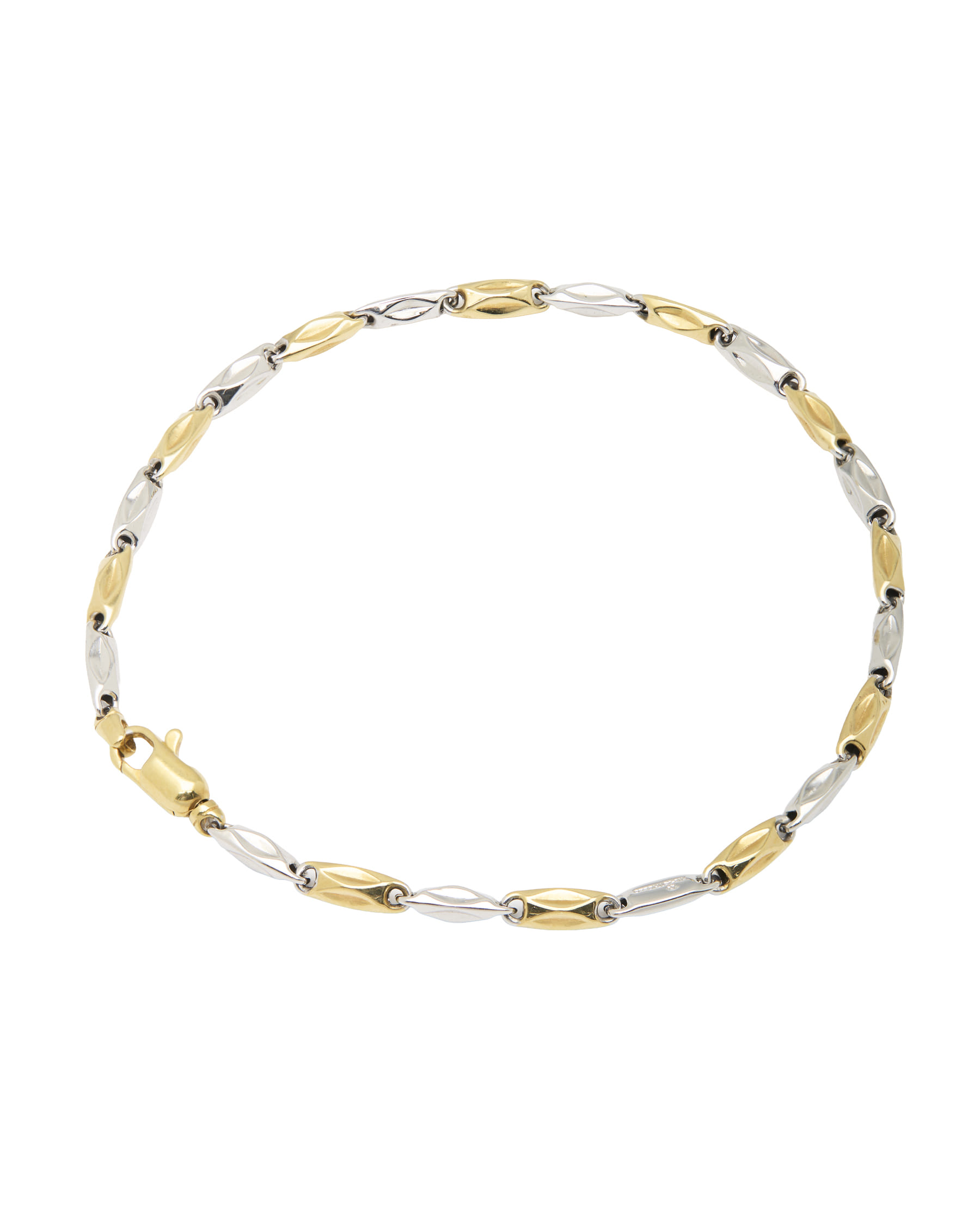 Lasciati incantare dall’eleganza senza tempo del Bracciale Chicchi di Riso in oro giallo e bianco 18kt. Un gioiello raffinato, dal design iconico, rigenerato e pronto per brillare di nuova luce al tuo polso!