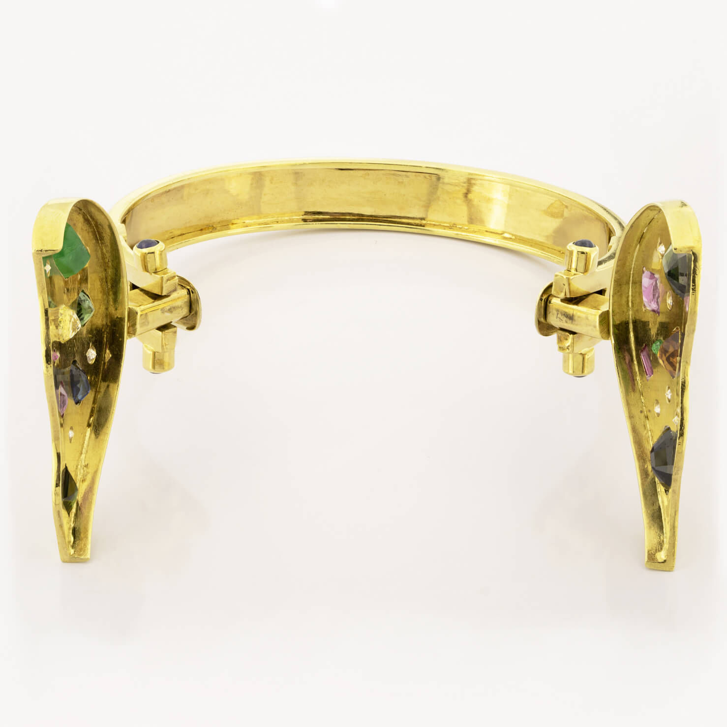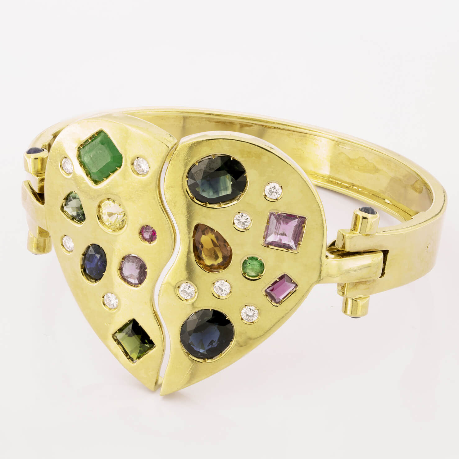 Bracciale Cuore in oro giallo , zaffiri e smeraldi 9,70ct tot e diamanti 0,45ct tot