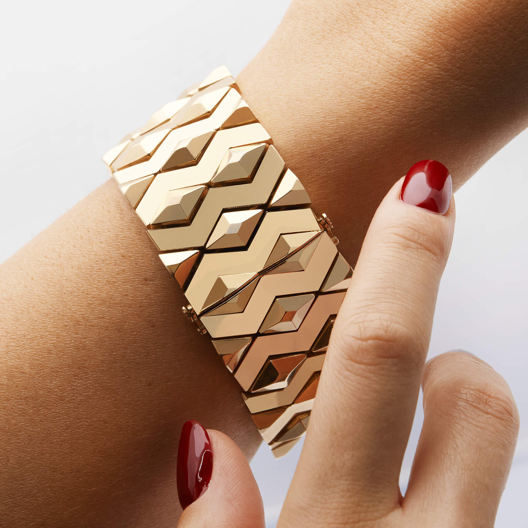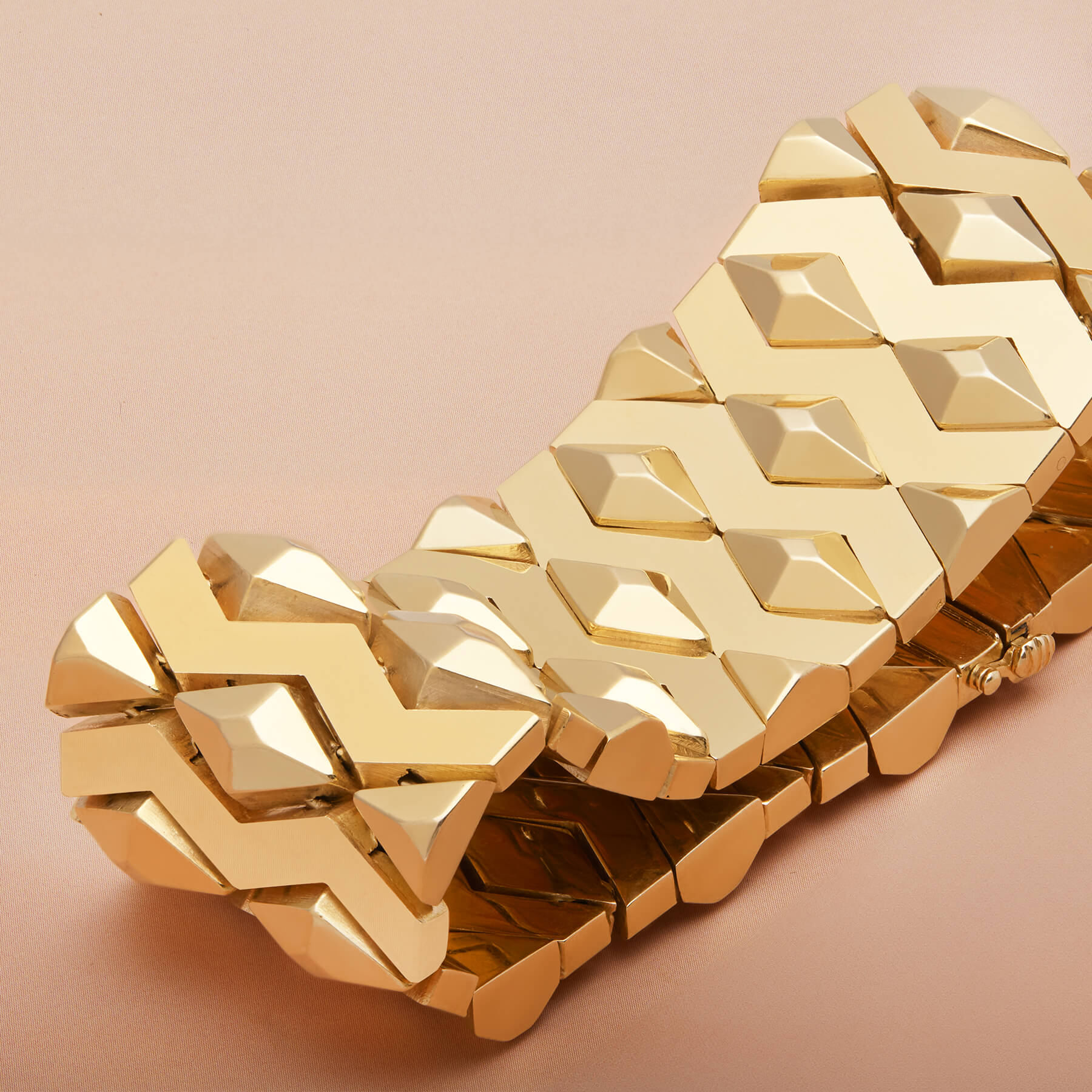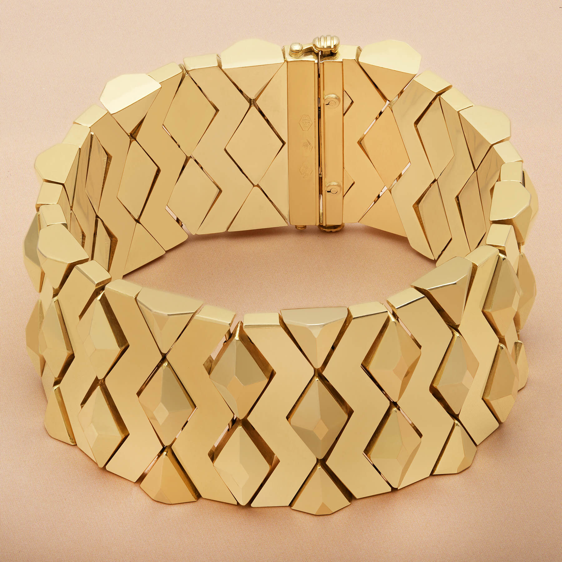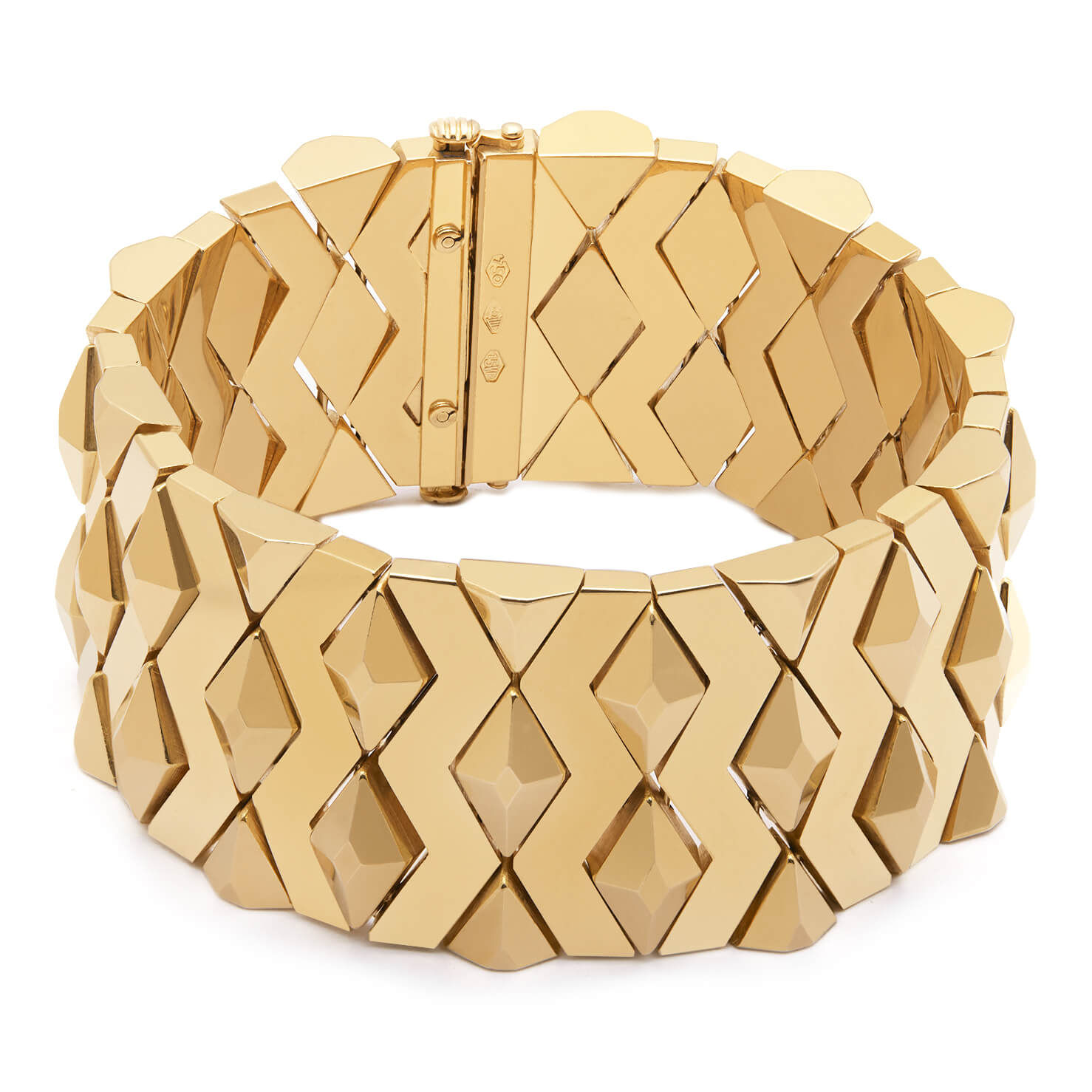 Bracciale geometrico Weingrill realizzato in oro giallo 18kt. Lunghezza 19cm