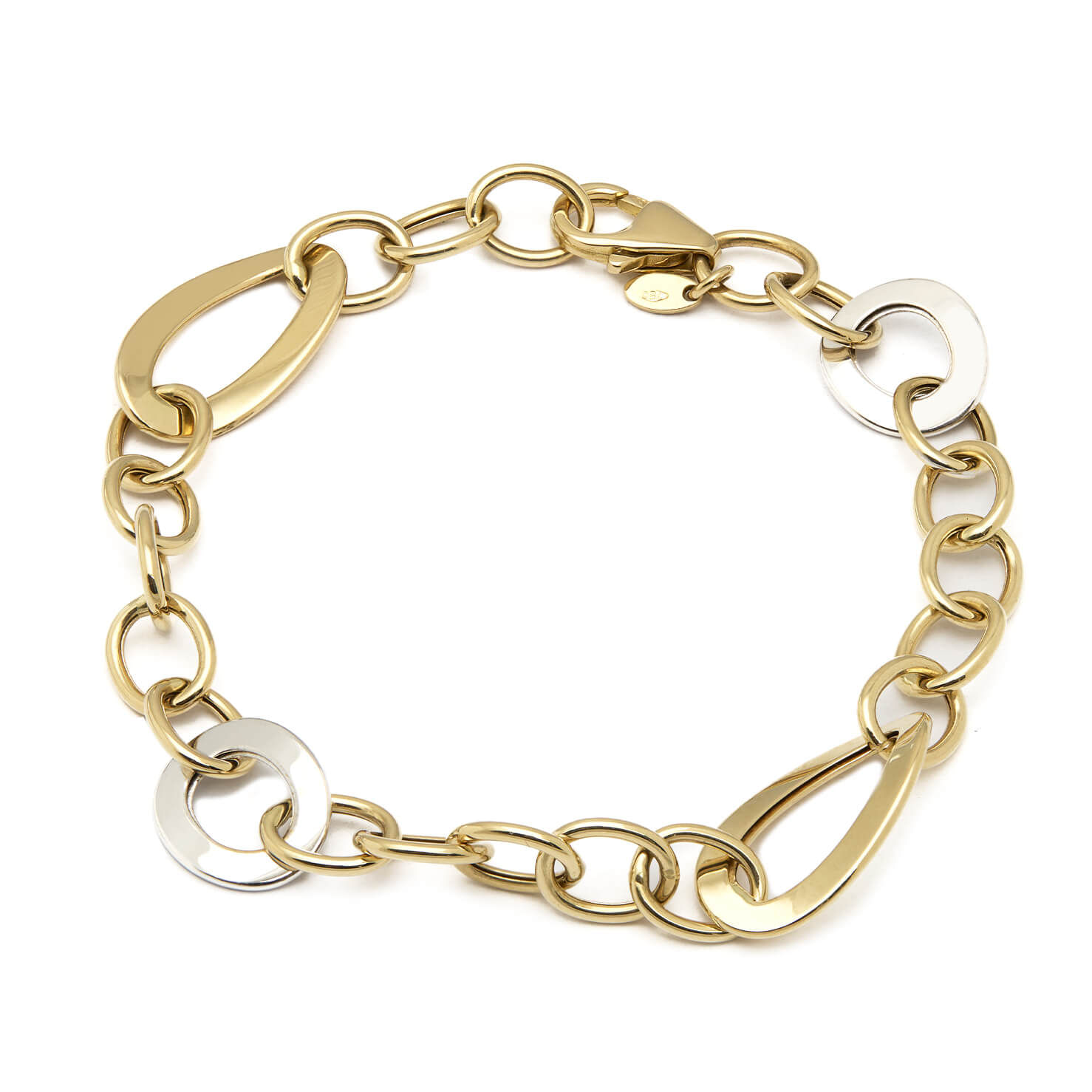 Bracciale realizzato in oro giallo e bianco 18kt. Lunghezza 18cm