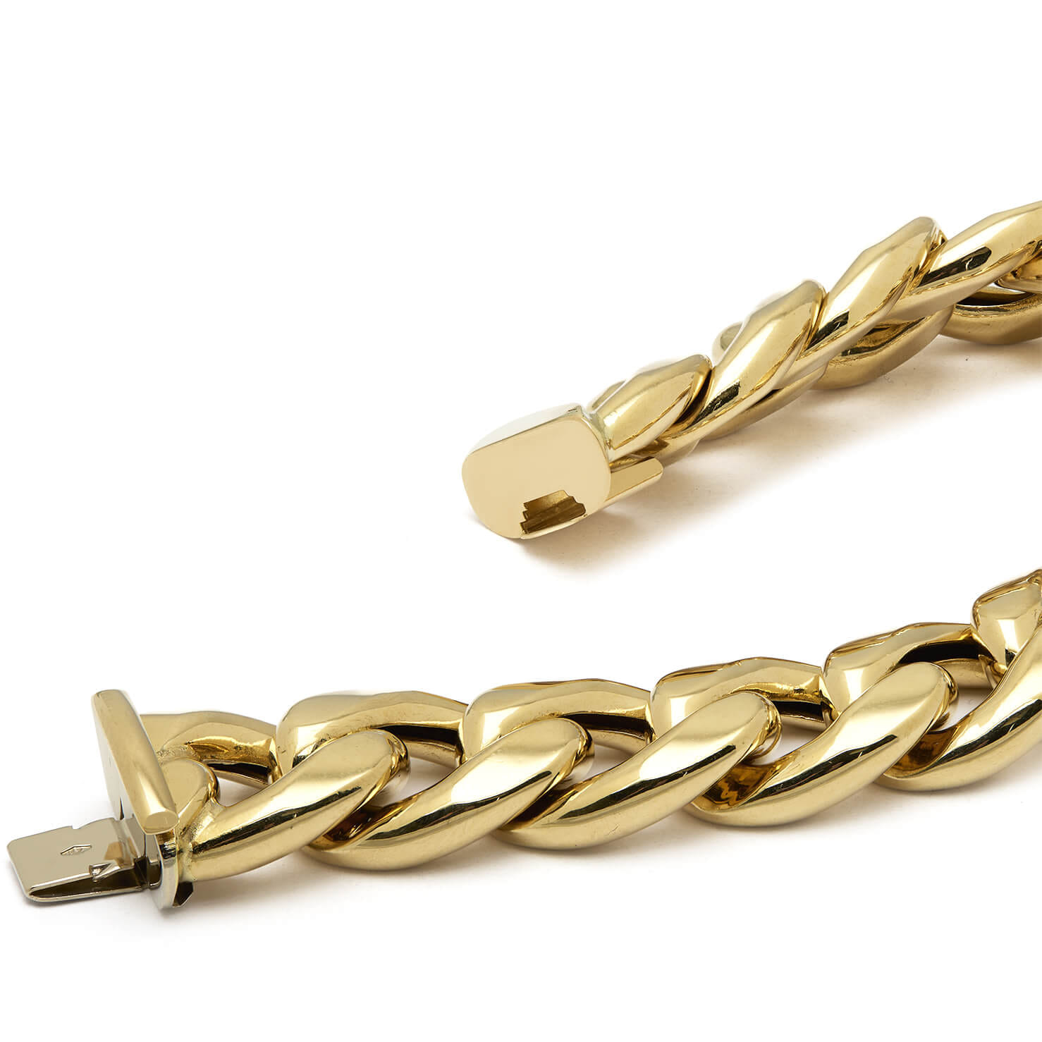Bracciale realizzato in oro giallo 18kt catena maglia cubana. Lunghezza 21cm