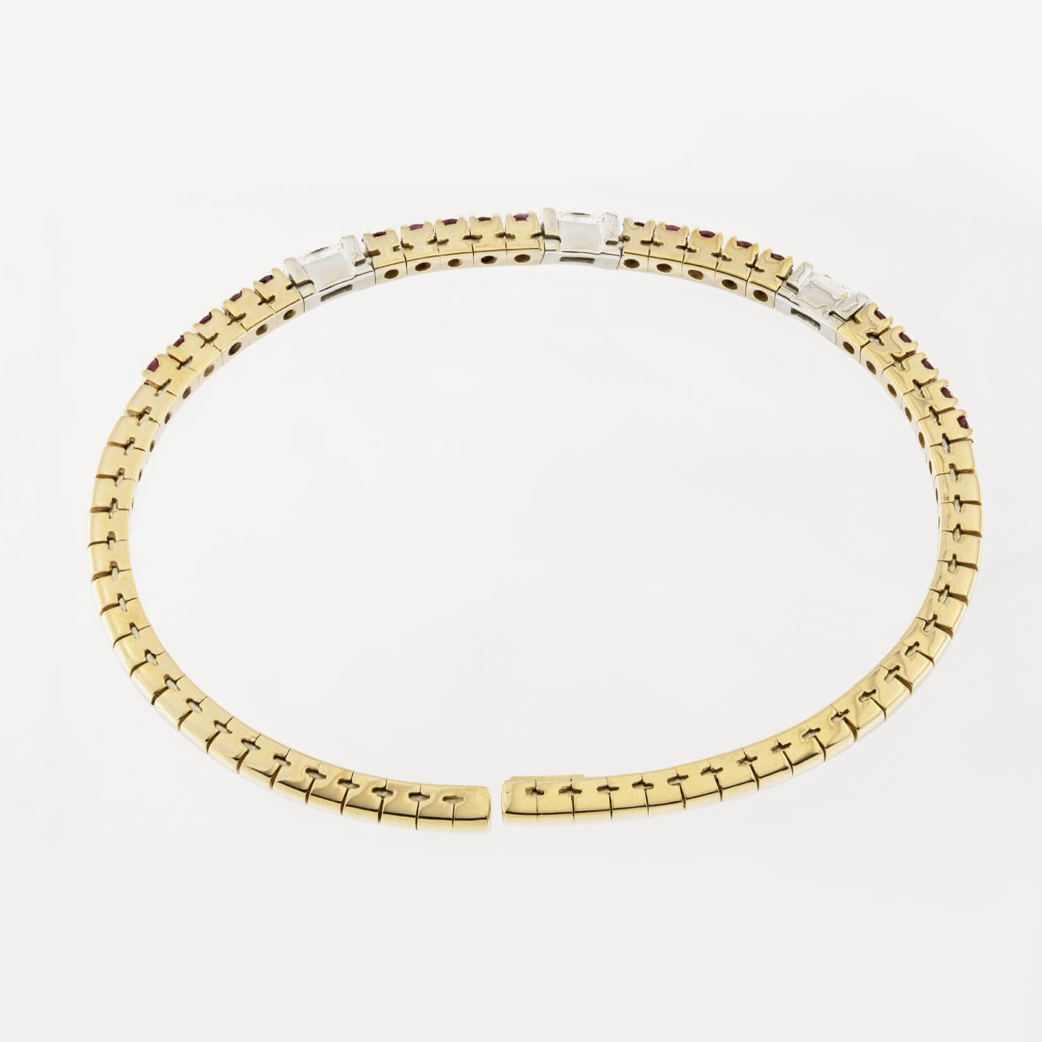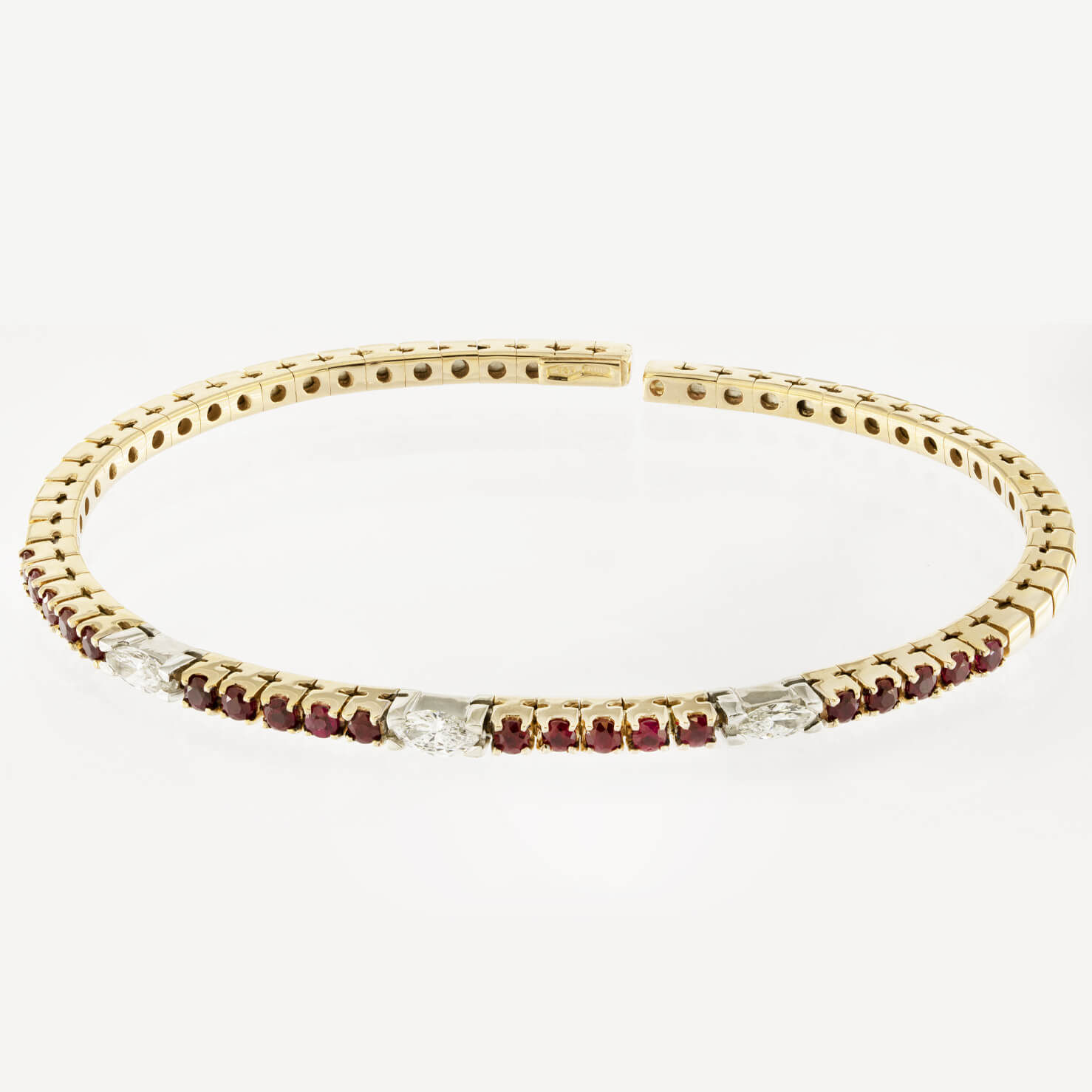 Bracciale rigido in oro giallo con diamanti taglio marquise 0,60ct tot e rubini 1,80ct tot