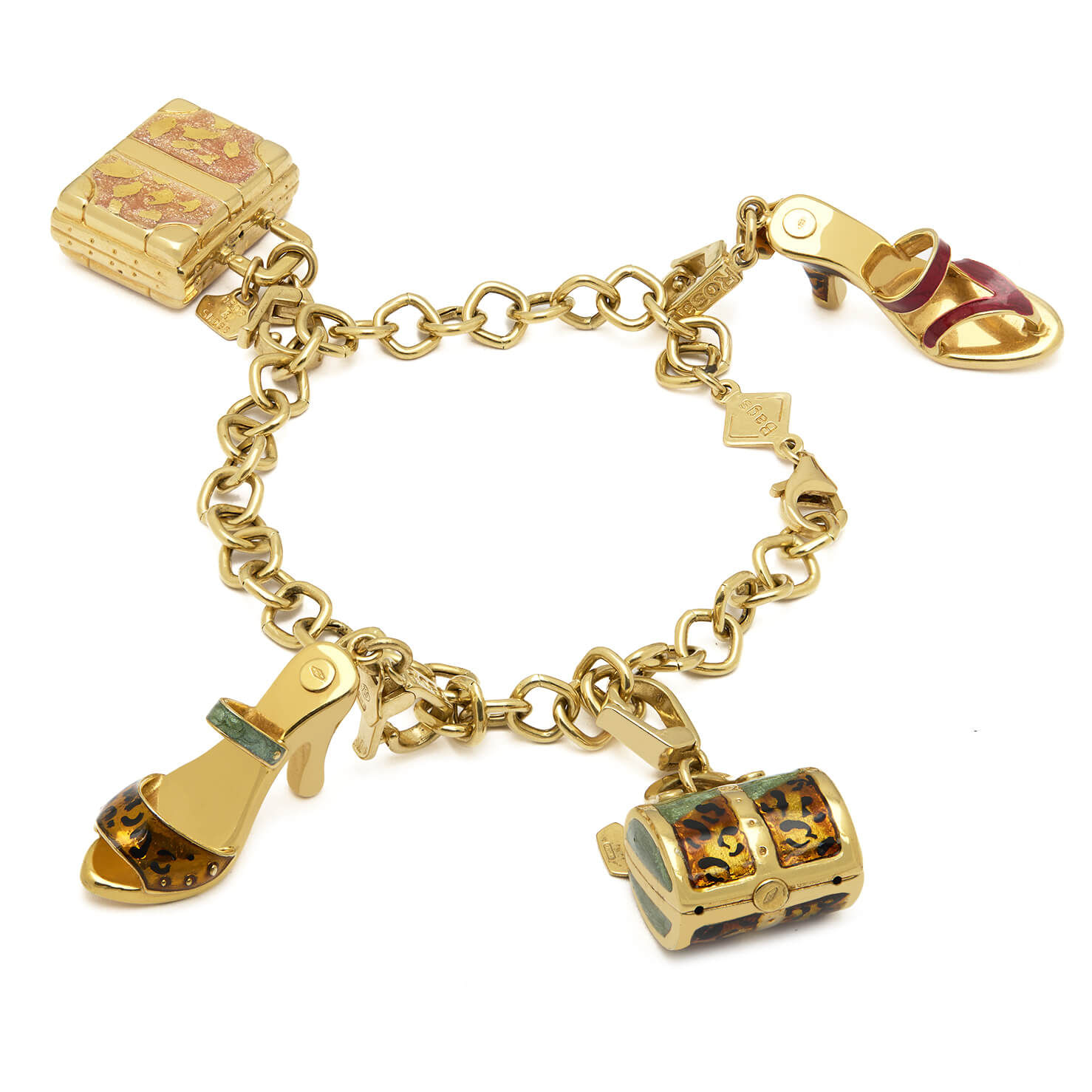 Bracciale Rosato Gold con charms realizzato in oro giallo 18kt. Lunghezza 19cm