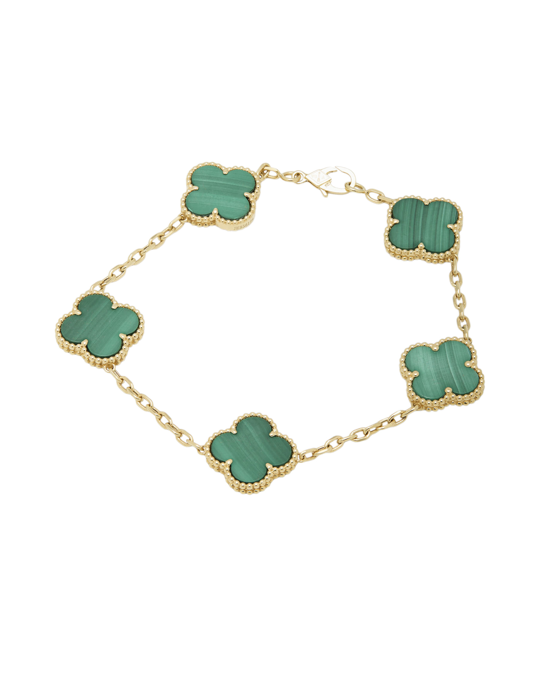 Scopri la raffinata eleganza del bracciale stile Alhambra in oro giallo 18 kt e malachite. Un gioiello esclusivo dal design iconico, rigenerato e garantito, perfetto per esprimere personalità unica e classe sofisticata!