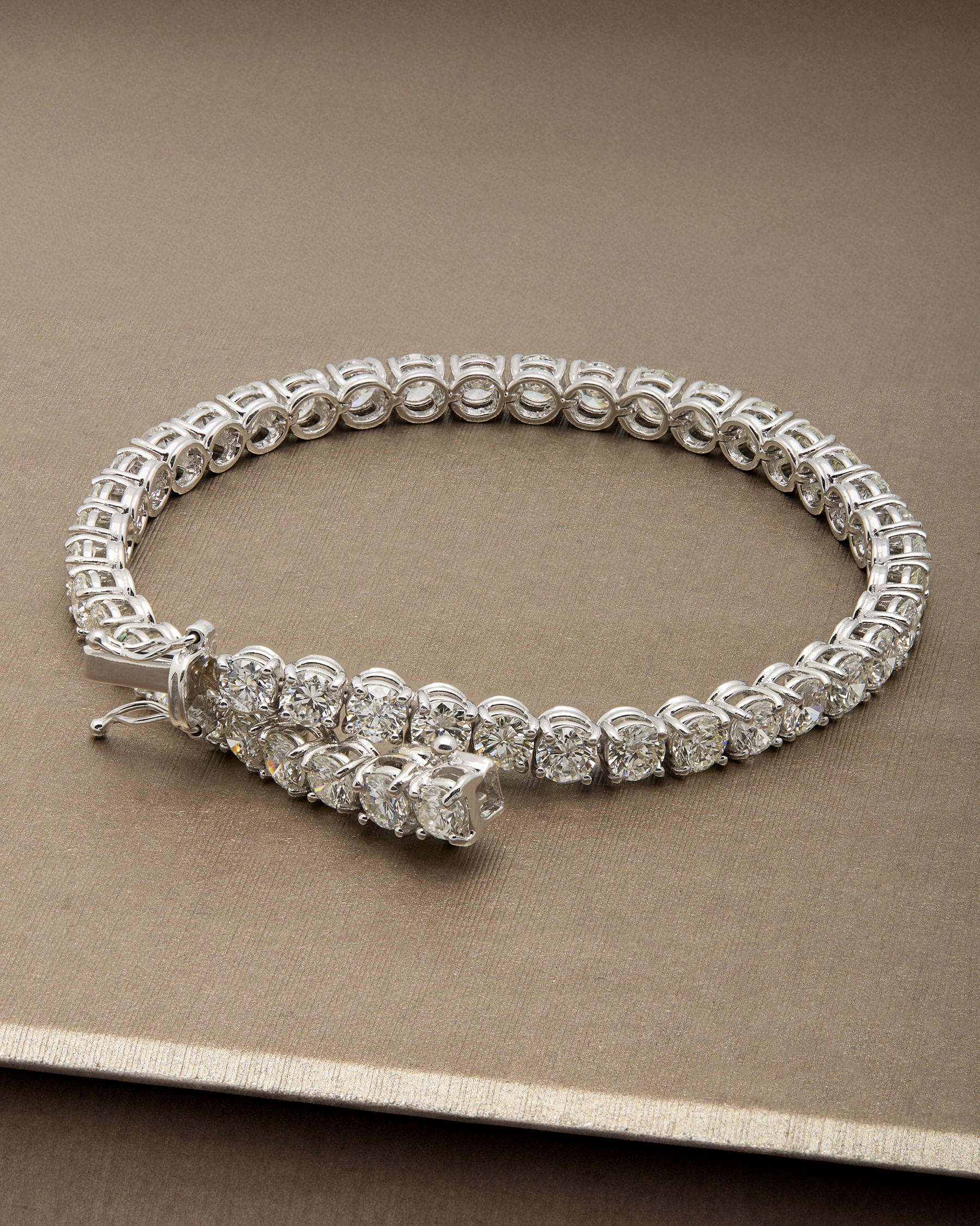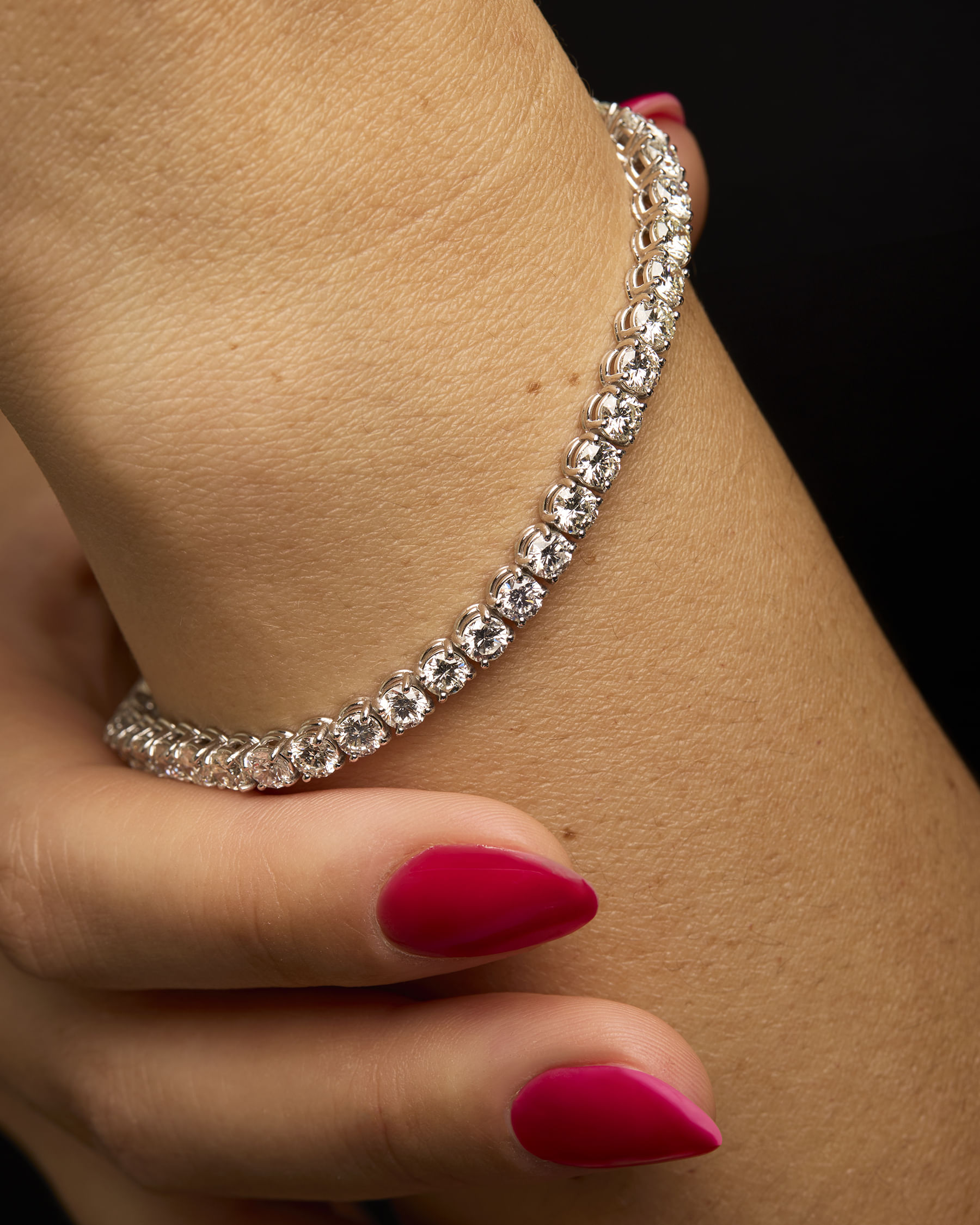 Bracciale tennis realizzato in oro bianco 18kt e diamanti taglio round 9ct tot. L’articolo è una nuova creazione. Lunghezza 18cm