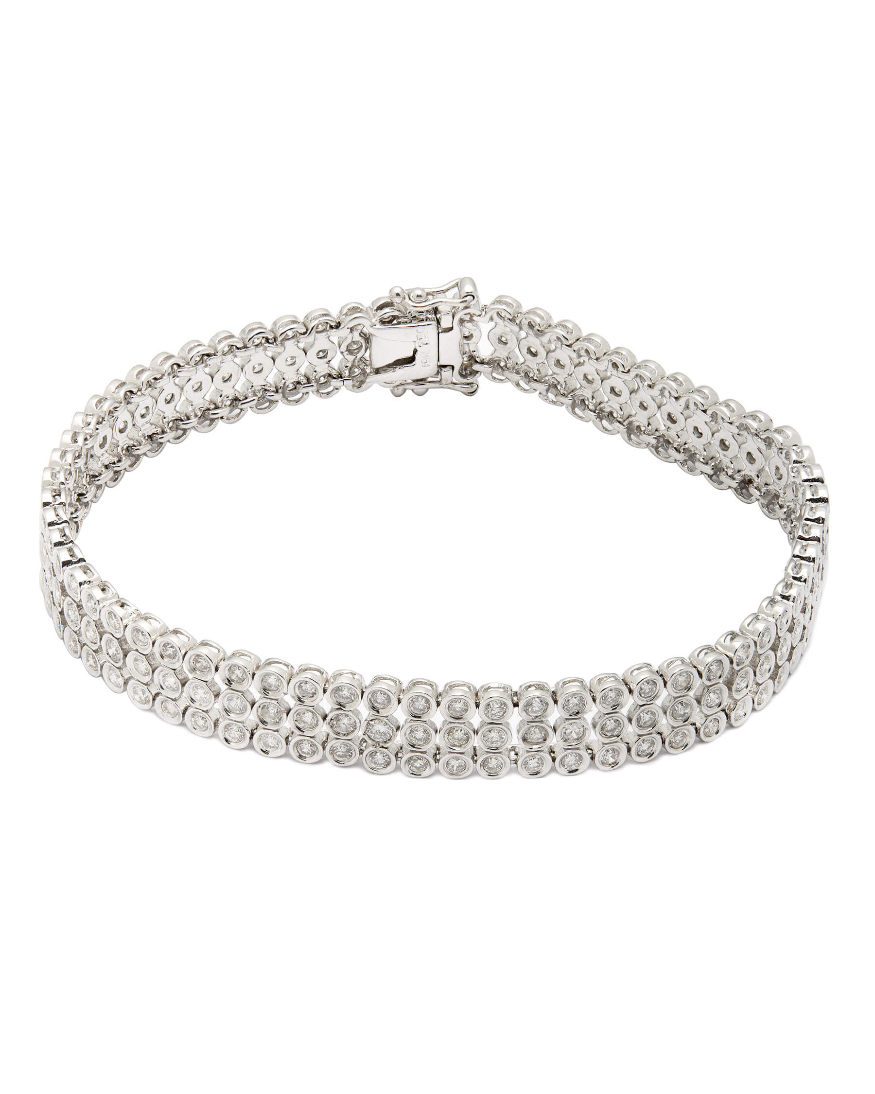 Bracciale tennis tre fili realizzato in oro bianco 18kt con diamanti taglio round 2,83ct tot. Lunghezza 17cm
