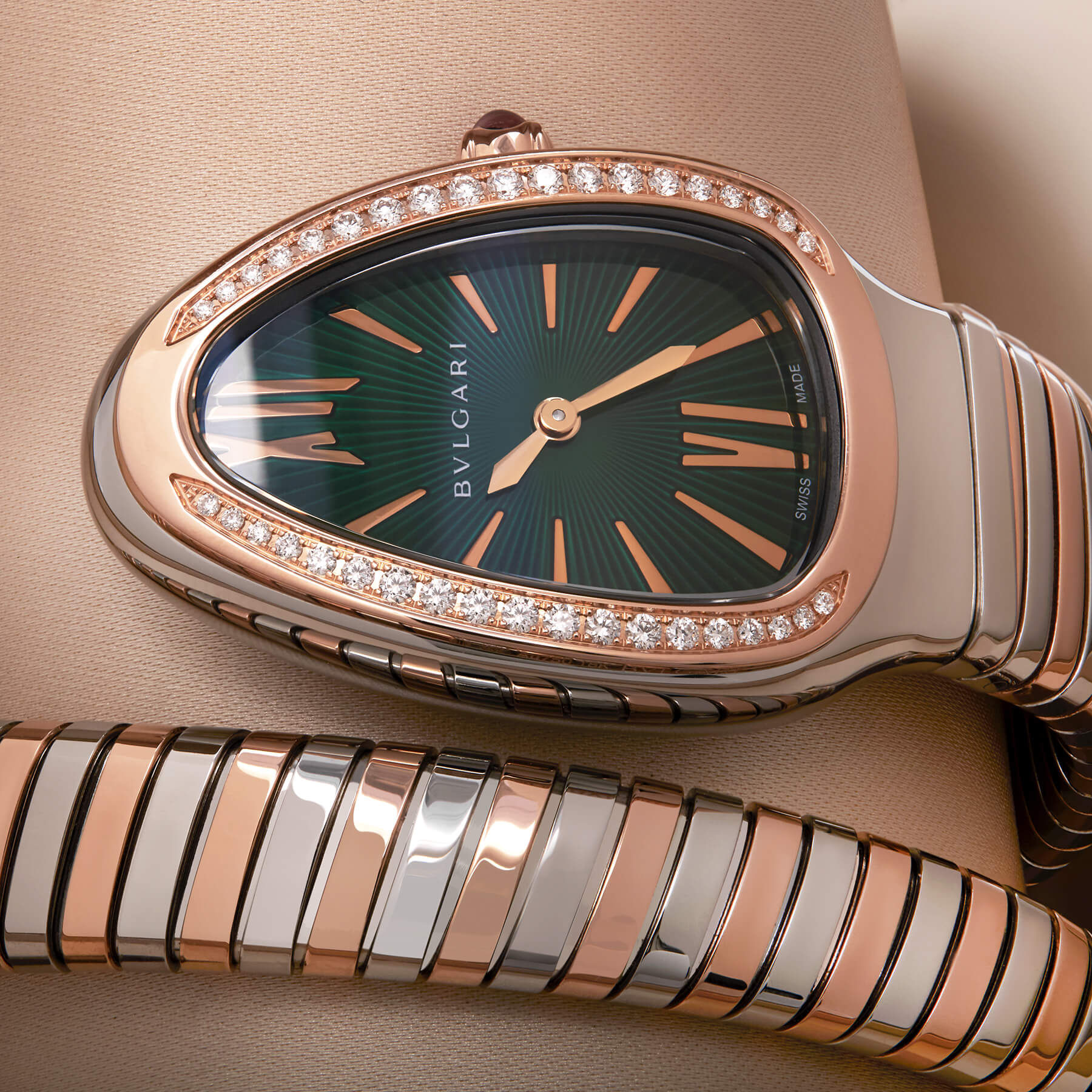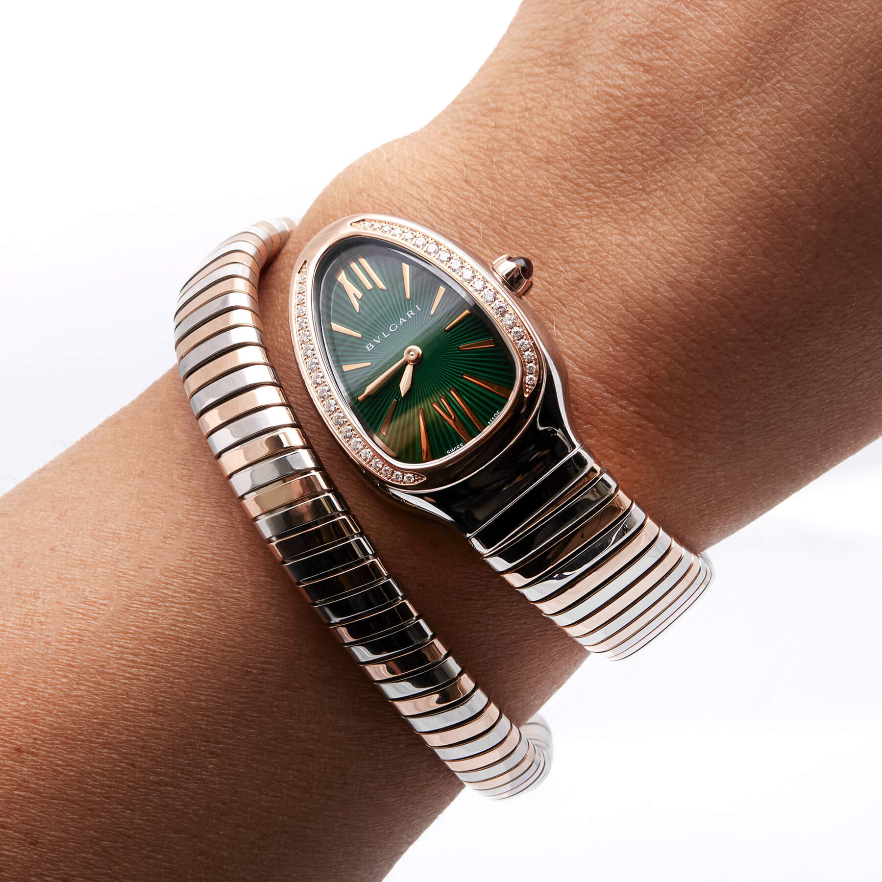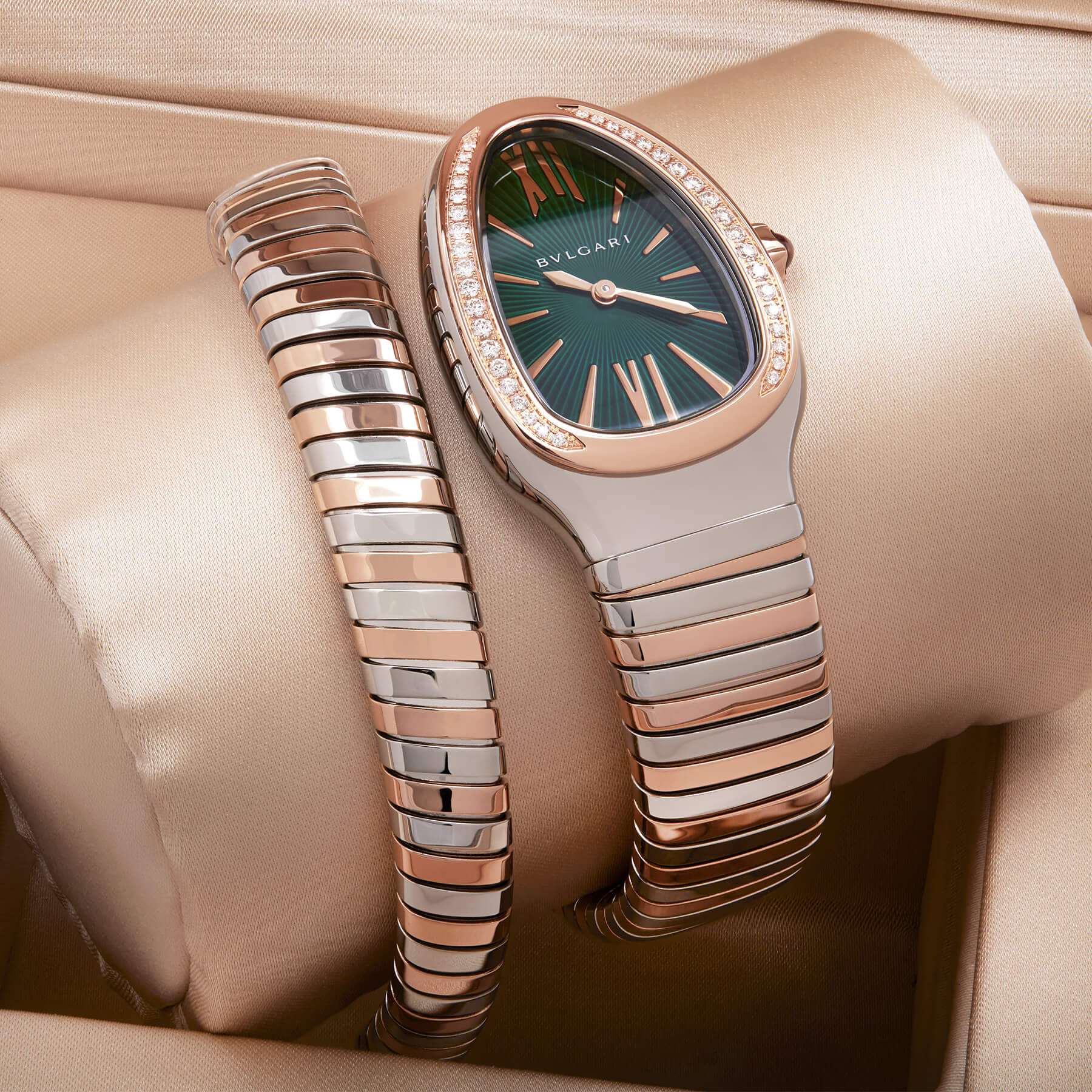 Bulgari serpenti tubogas green dial diamonds rose gold & steel ref SP35SPG/102098