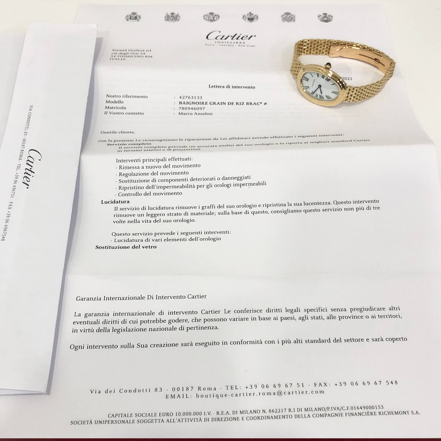 L’orologio è certificato e garantito dalla nostra azienda, ed è visibile presso la nostra sede di Via Giacinto de Vecchi Pieralice 7/13 (zona valle aurelia) Roma.