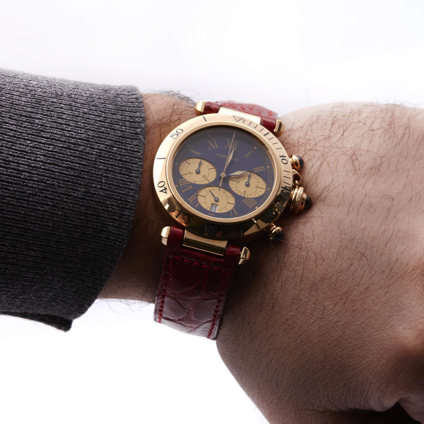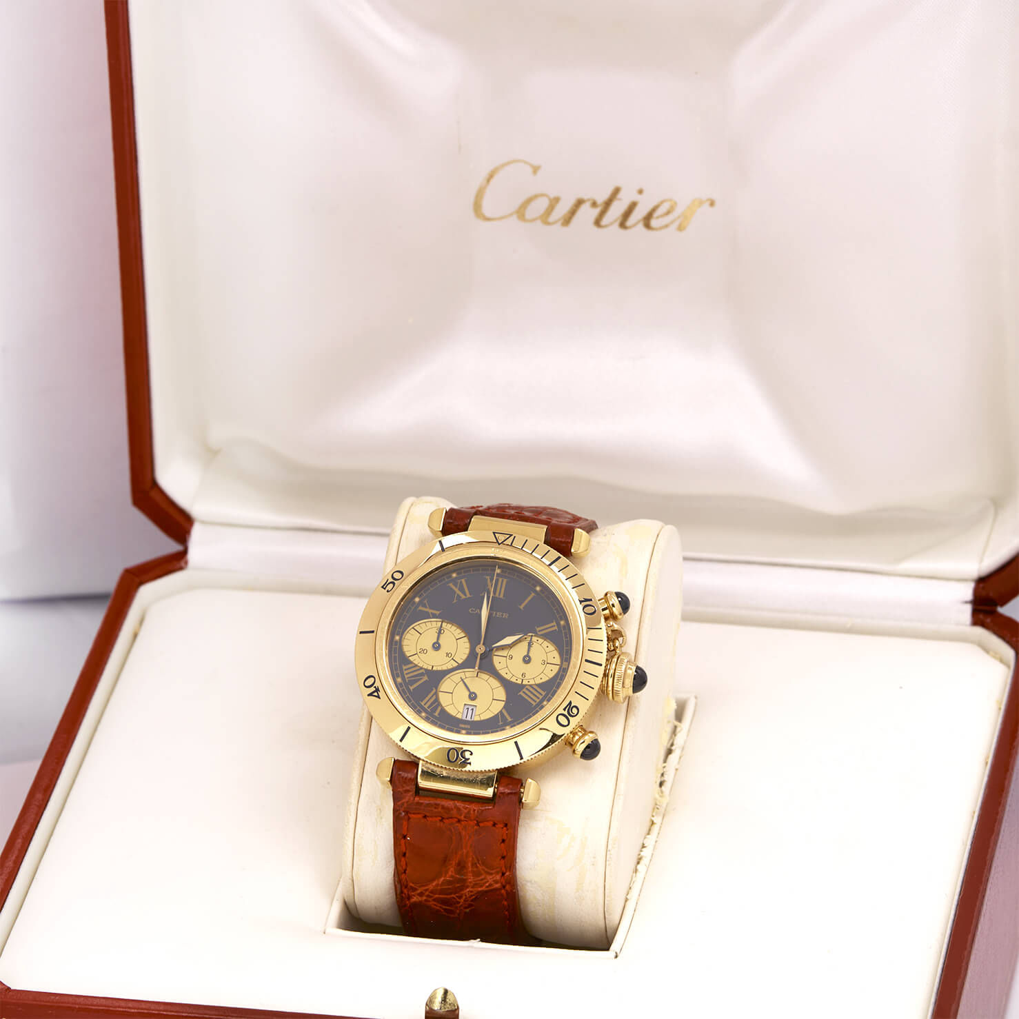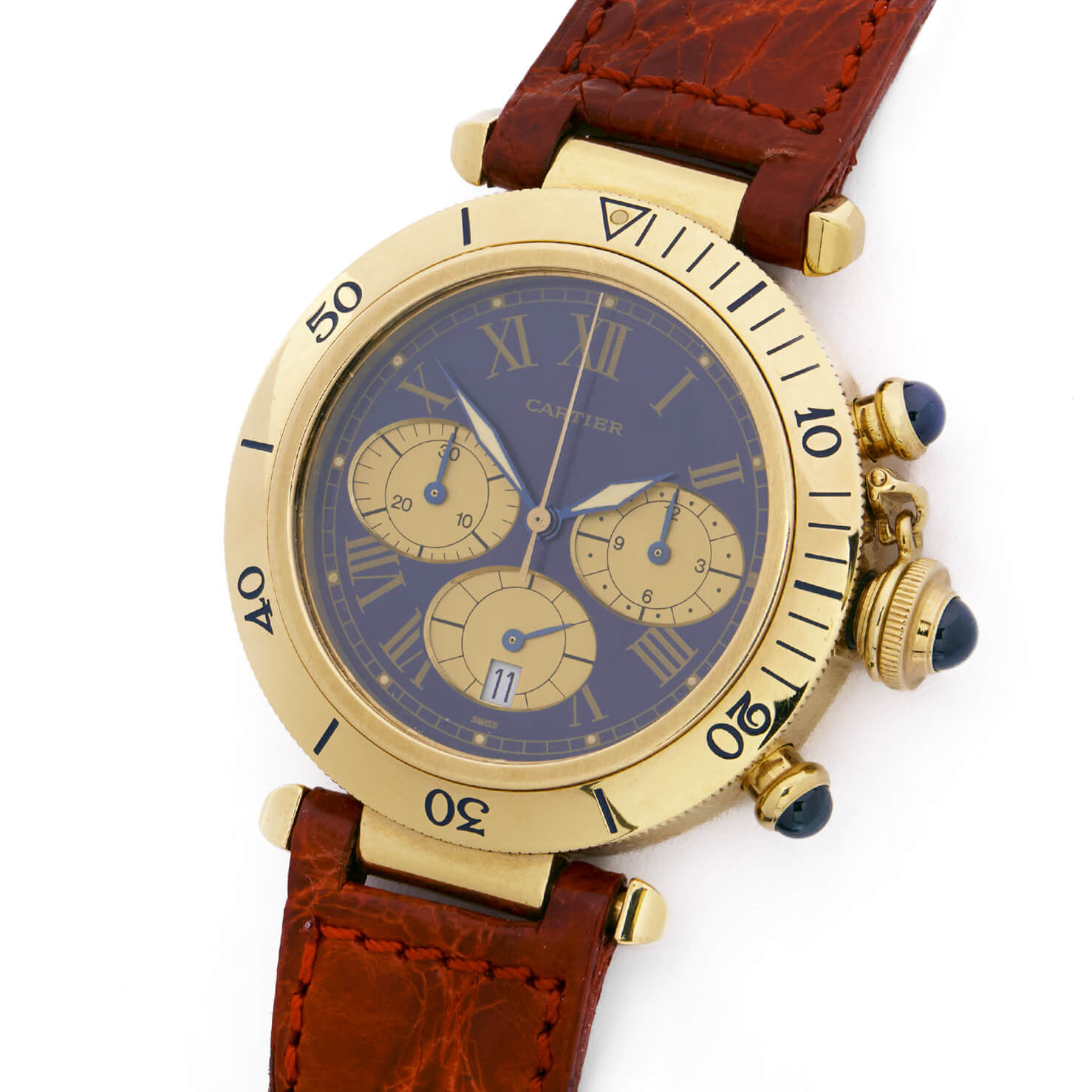 Marca e Modello orologio: Cartier Pasha Chronograph blue dial yellow gold ref 30009