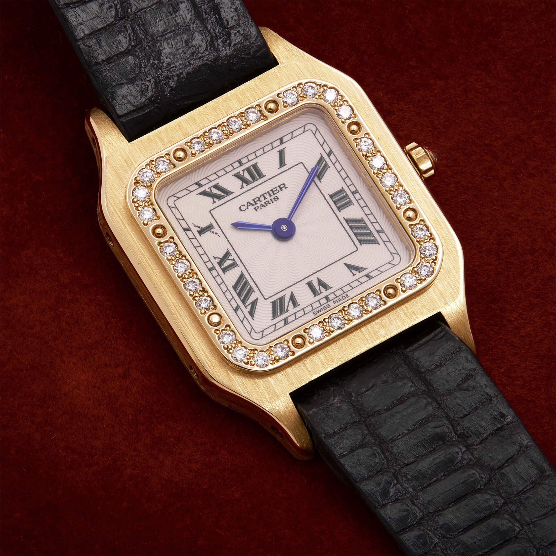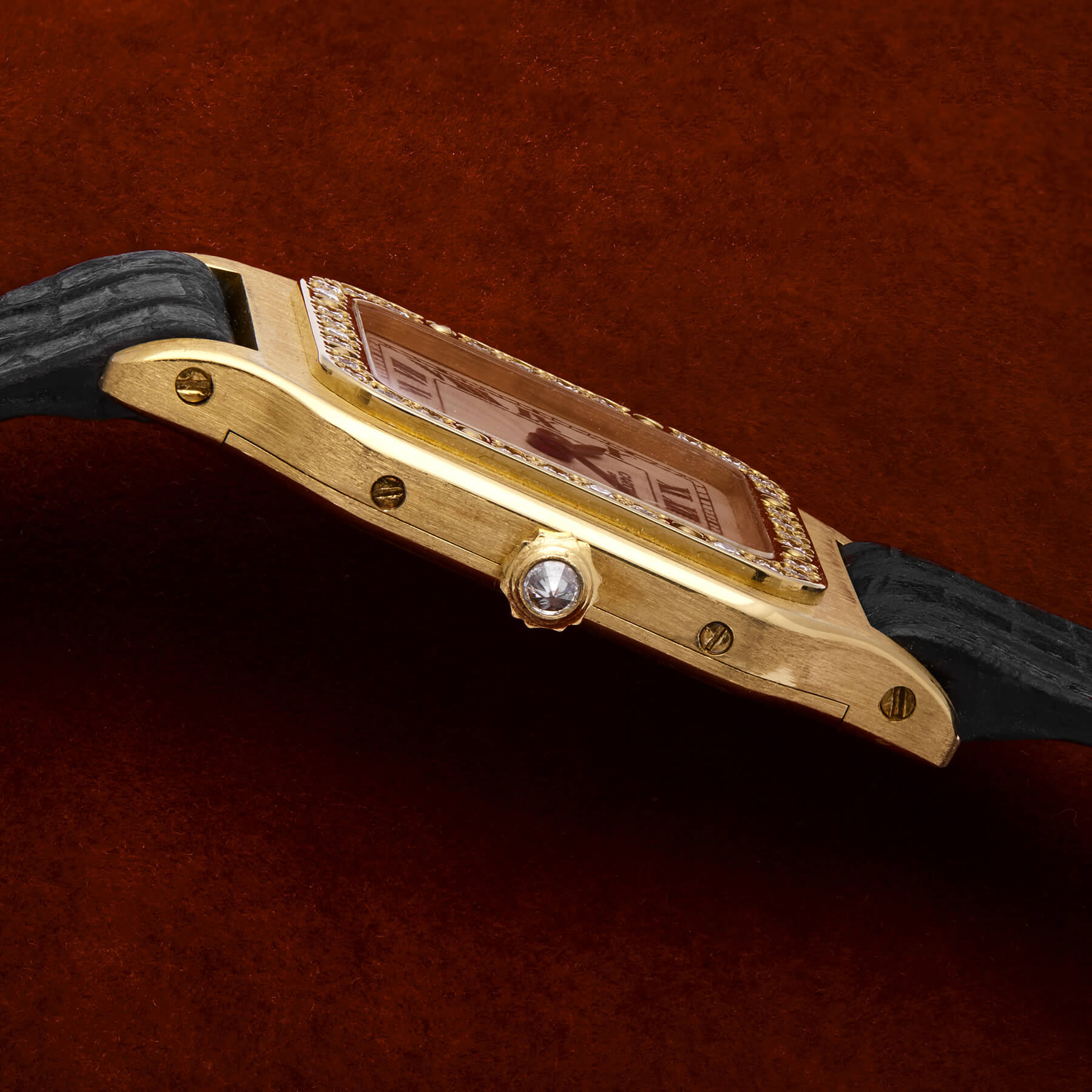 Cartier Santos Dumont 18kt yellow gold and diamonds extra-plate rare flinquè dial manual ref 821053