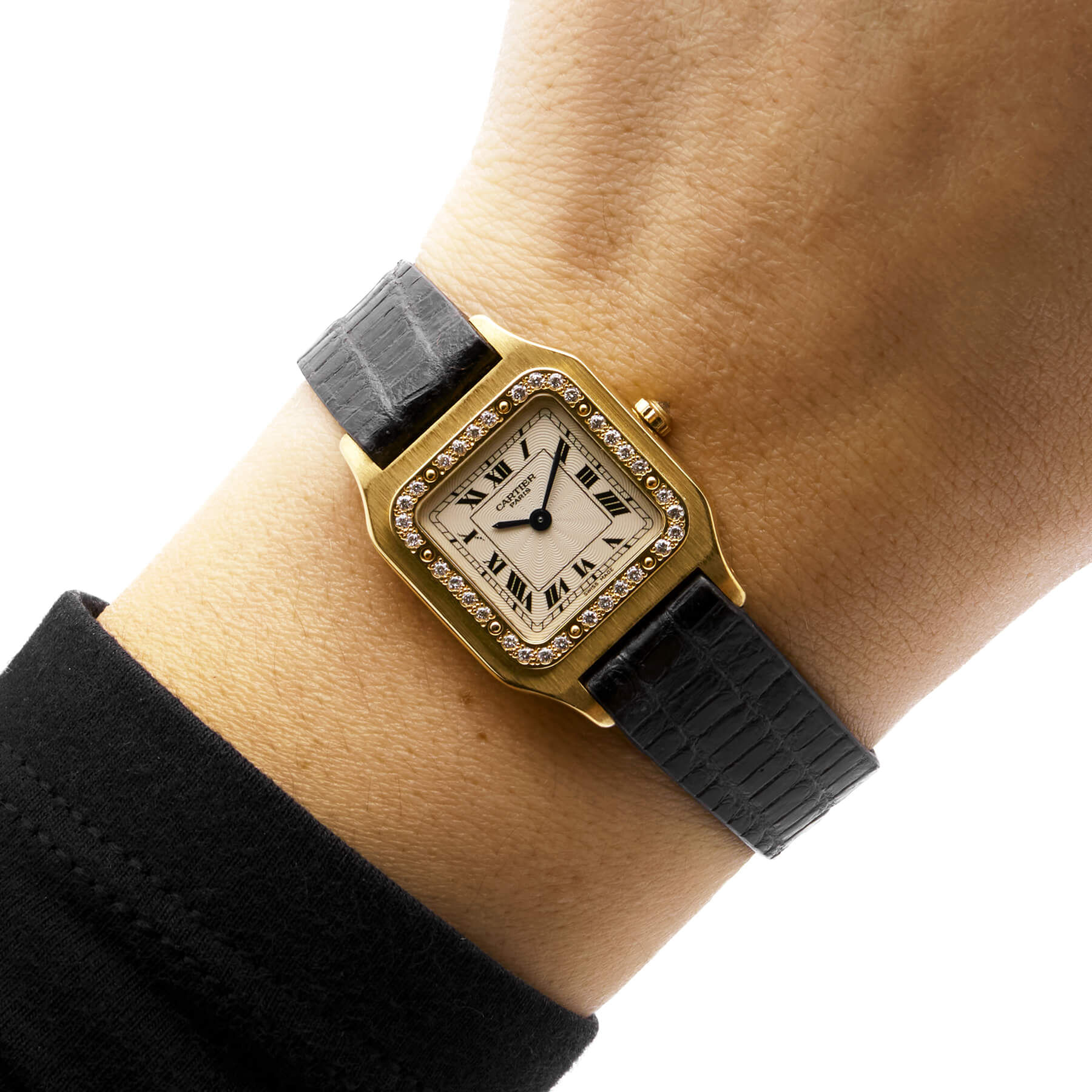 Marca e Modello orologio: Cartier Santos Dumont 18kt yellow gold and diamonds extra-plate rare flinquè dial manual ref 821053