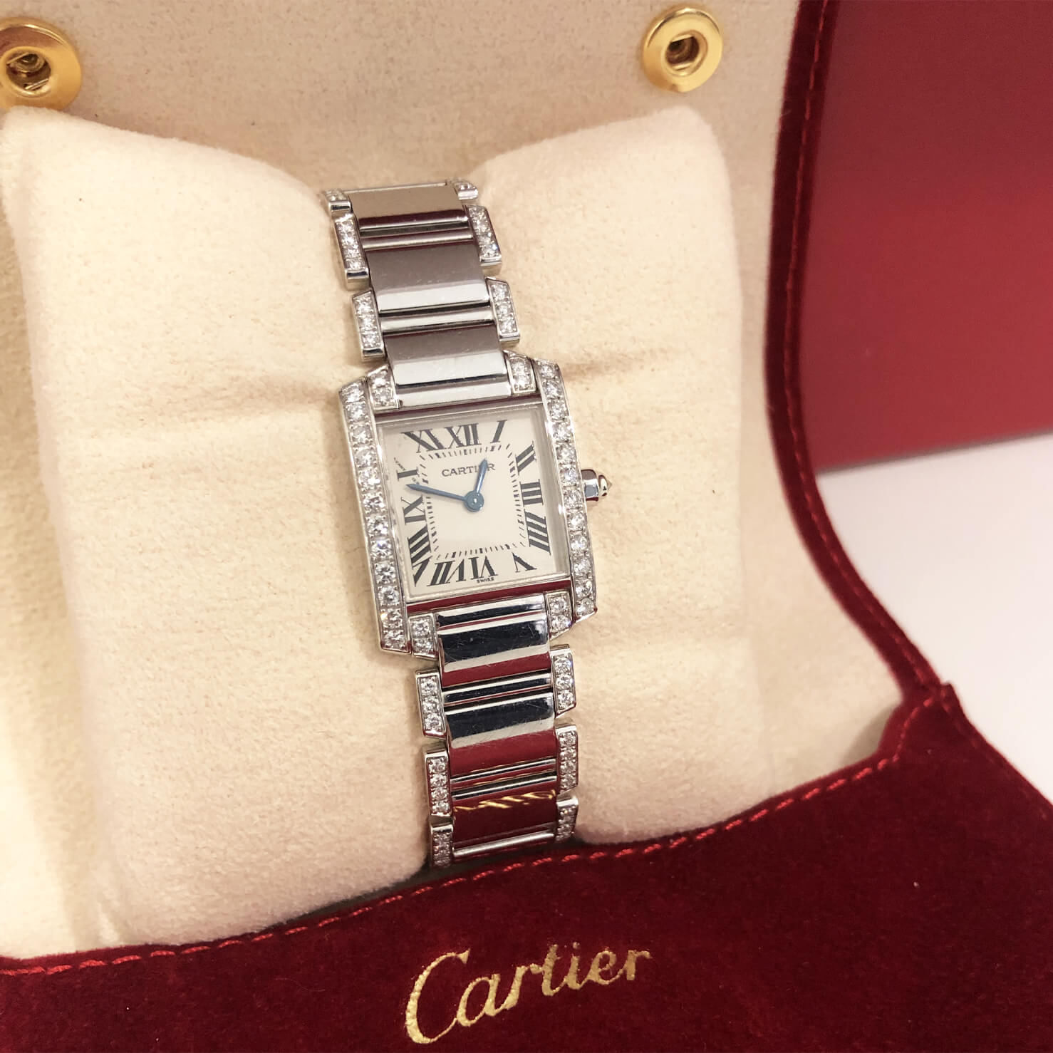 Cartier Tank Francaise White Gold Diamonds Factory ref 2403