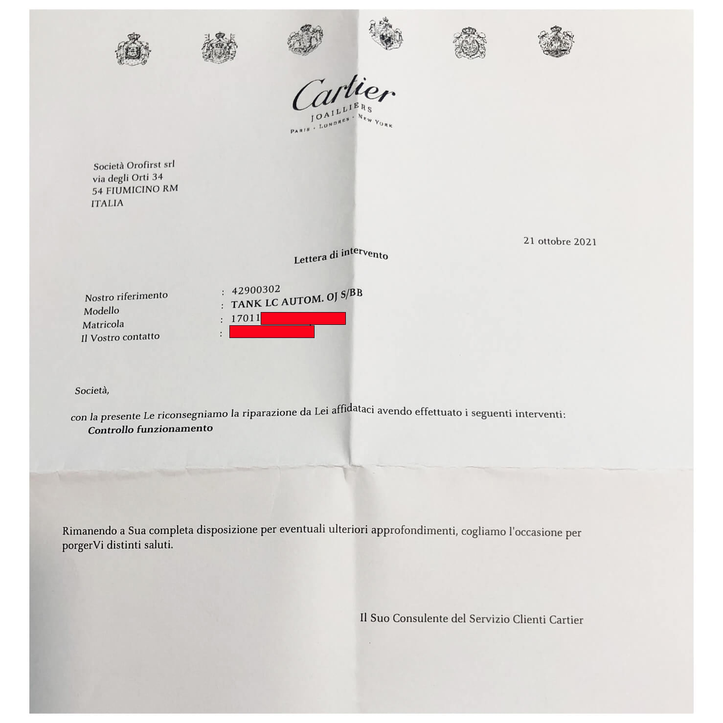Corredo: Pochette Cartier – Controllo funzionamento Cartier – Garanzia 12 mesi del rivenditore