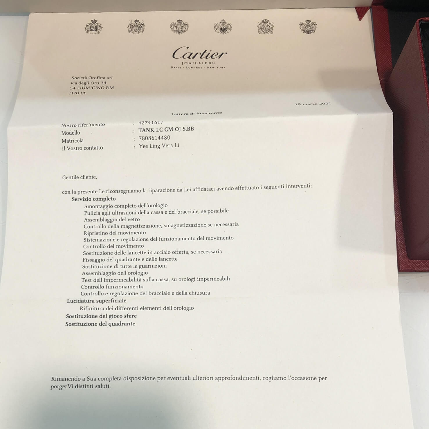 Marca e Modello orologio: Cartier Tank Louis Mecanical Service Cartier