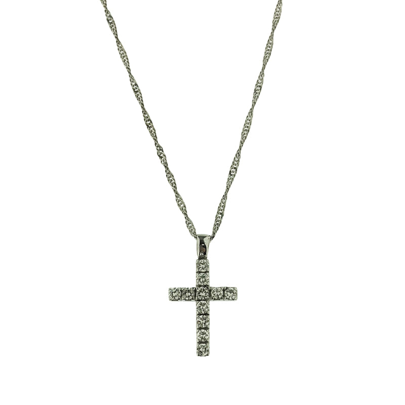 Catenina con ciondolo croce realizzata in oro bianco 18kt e diamanti taglio round 1,76ct