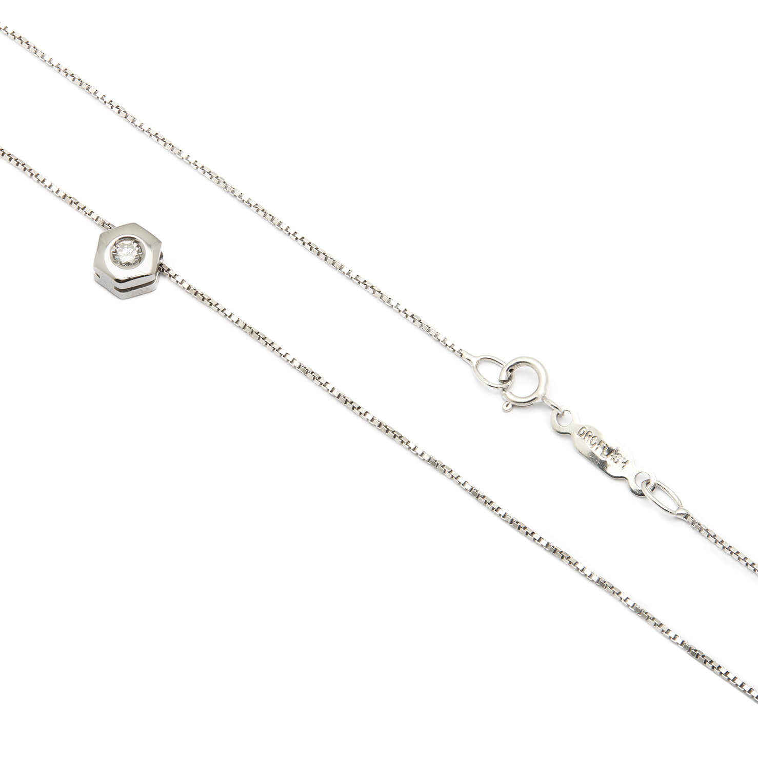 Catenina realizzata in oro bianco 18kt con punto luce esagonale in oro e diamante round 0,07ct. Lunghezza 45cm