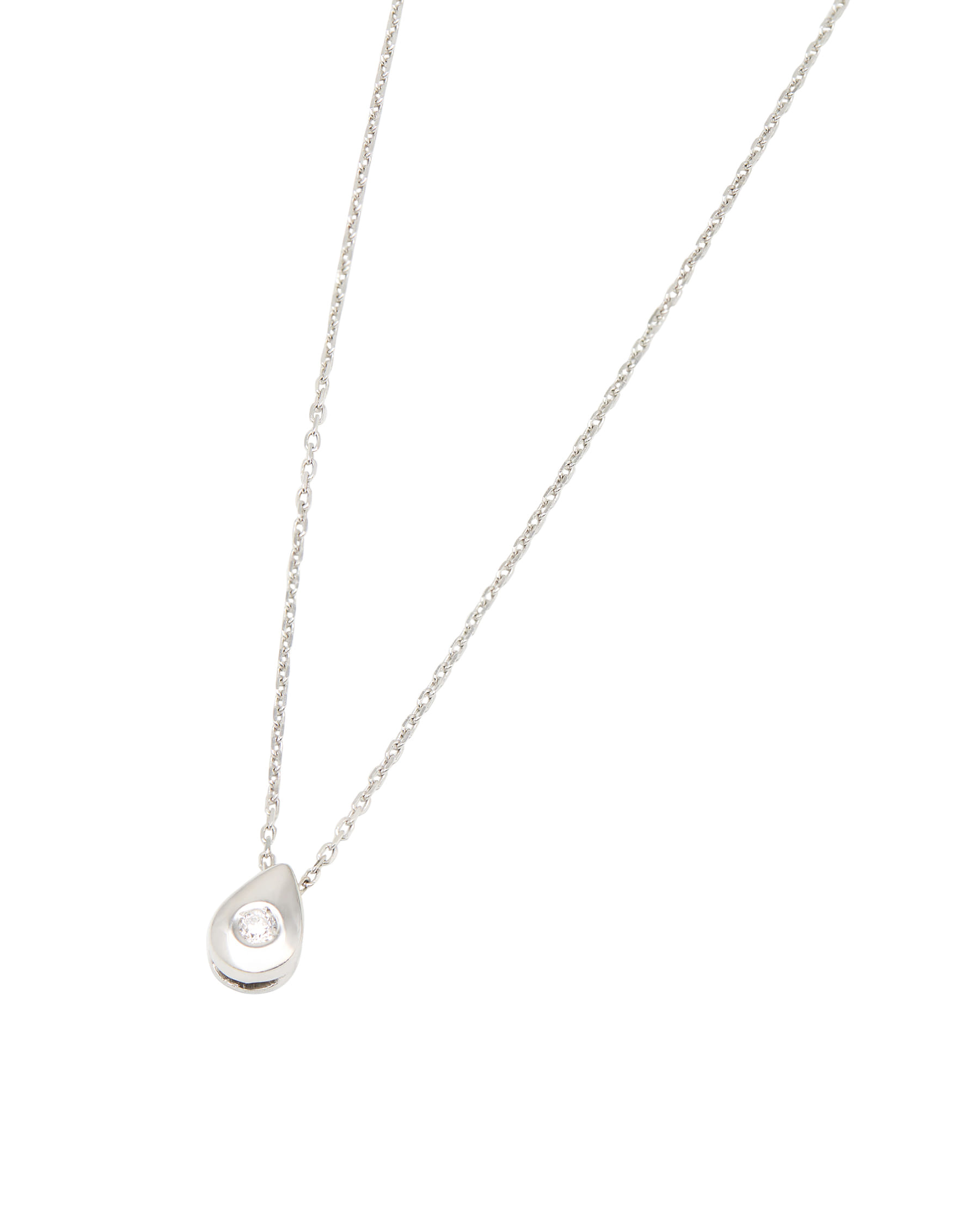 Catenina punto luce in oro bianco con ciondolo goccia e diamante 0,04ct
