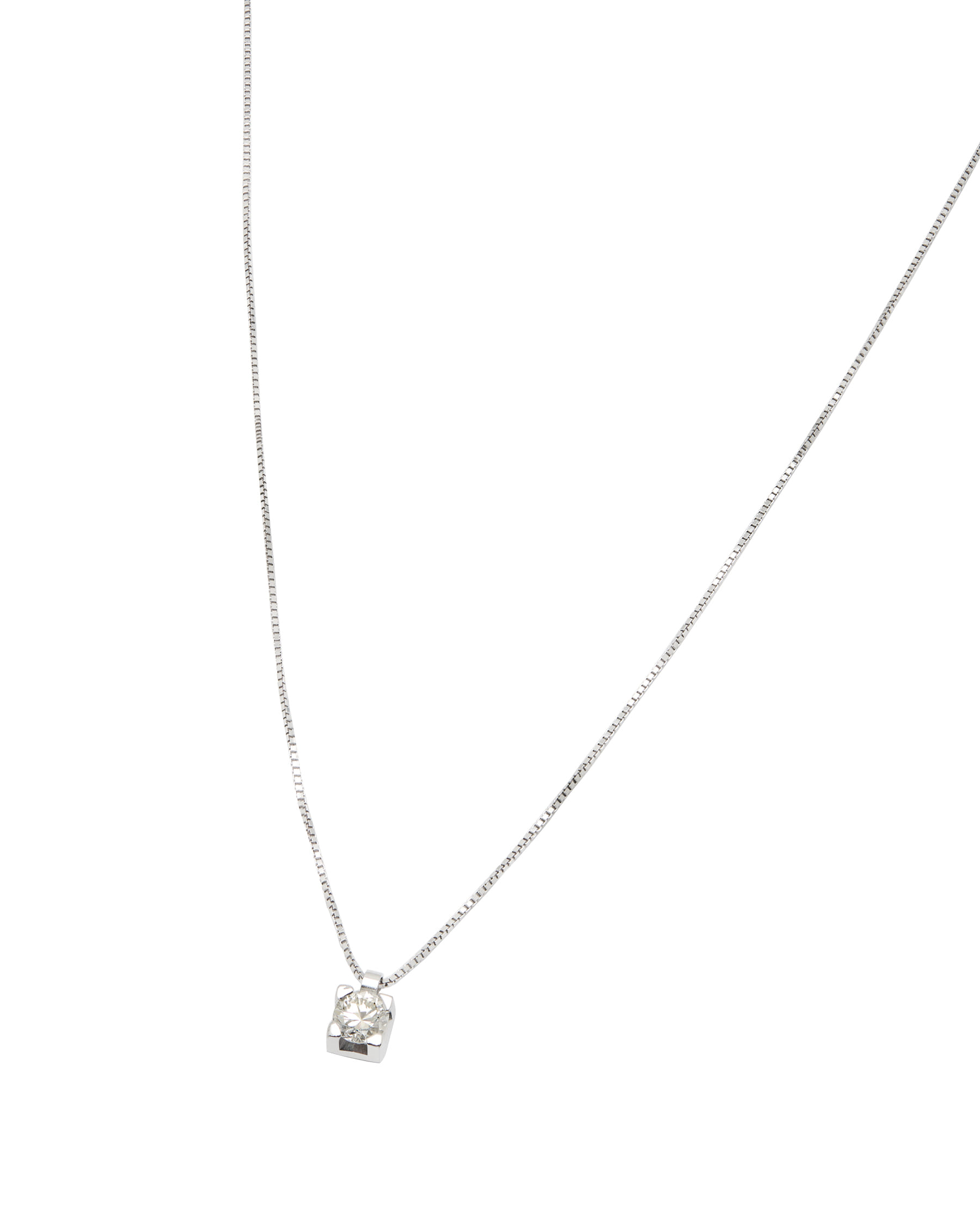 Catenina punto luce tornito realizzata in oro bianco 18kt e diamante taglio round 0,16ct. Lunghezza da 42a 45,5cm. L’articolo è una nuova creazione