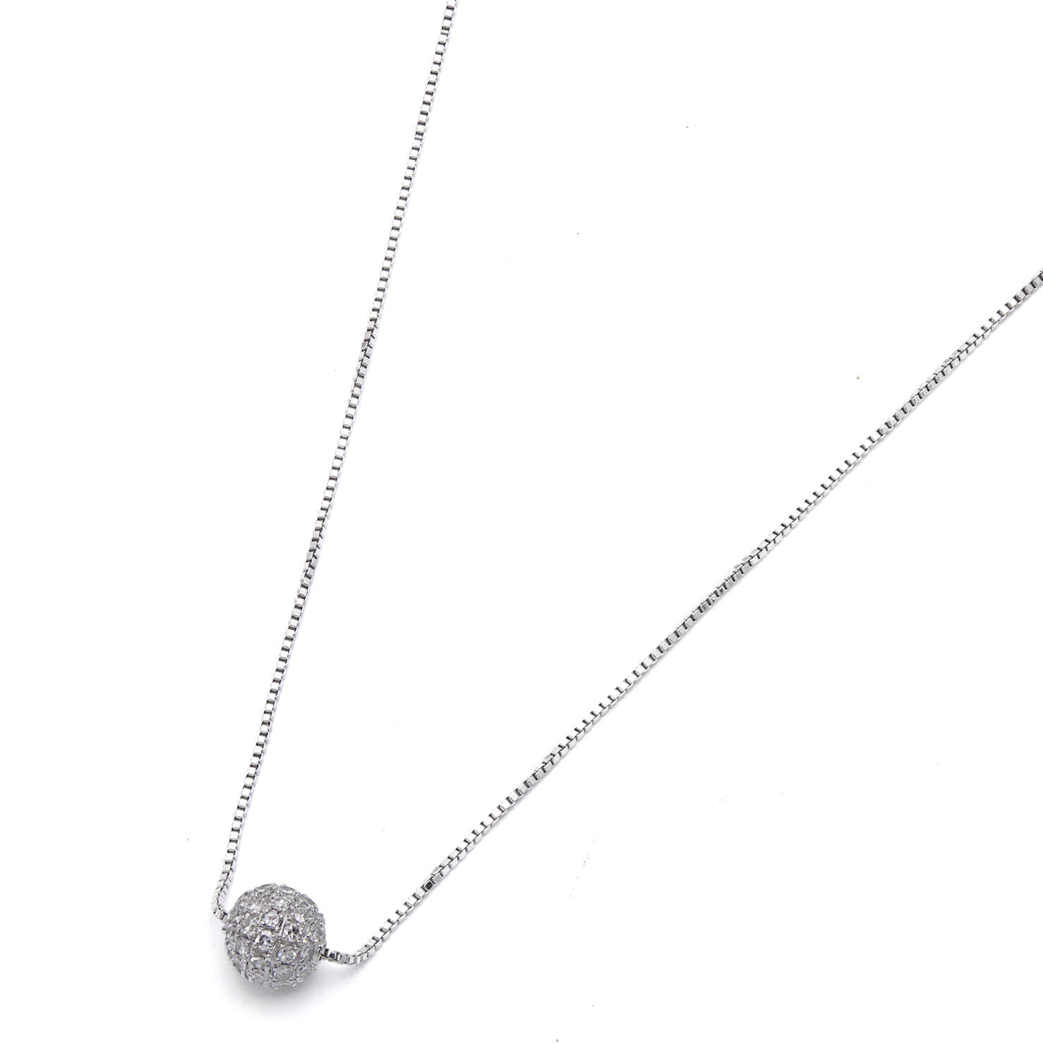 Catenina veneziana in oro bianco con ciondolo boulle di diamanti 0,27ct tot