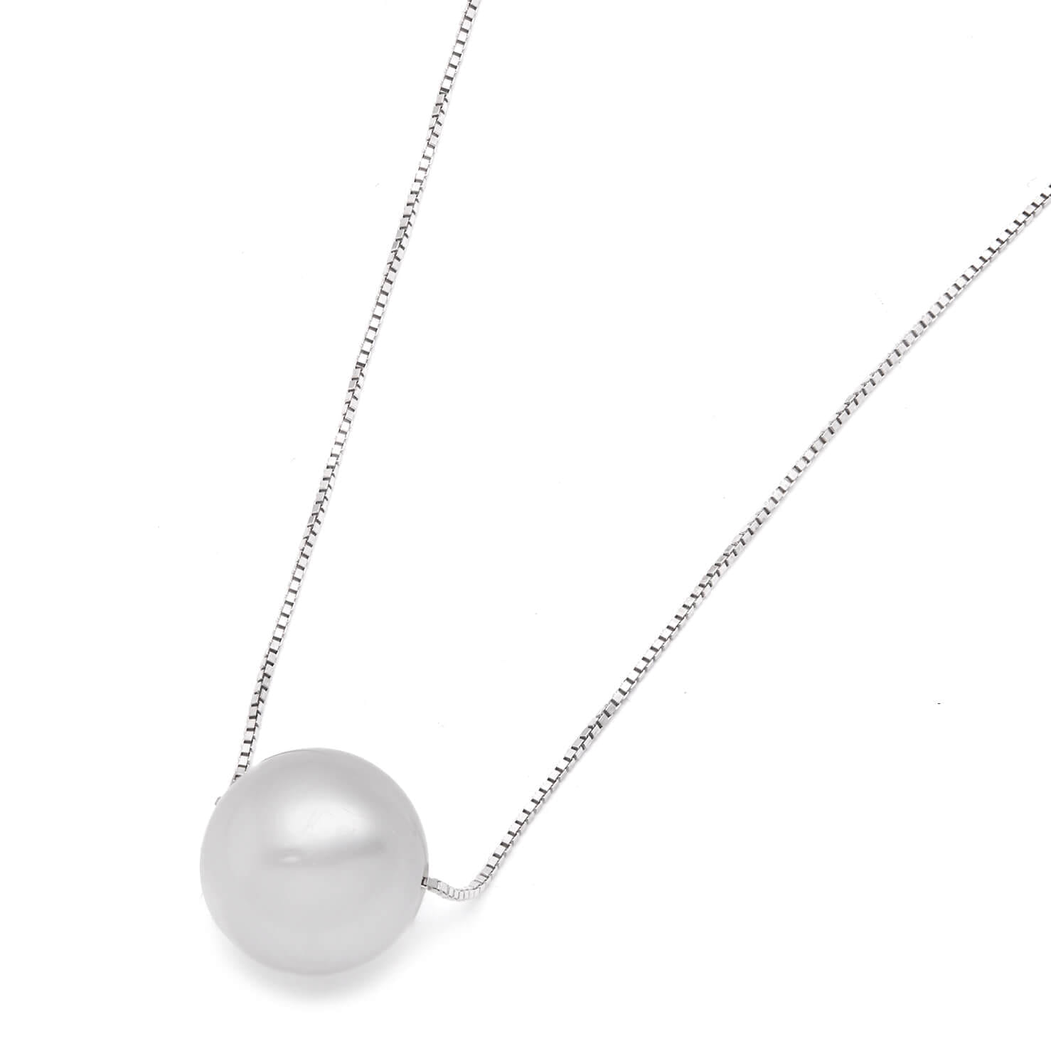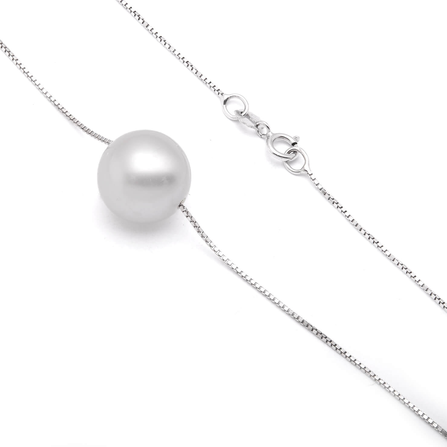 Catenina veneziana realizzata in oro bianco 18kt e perla centrale naturale di mare da 11mm. Lunghezza 50cm