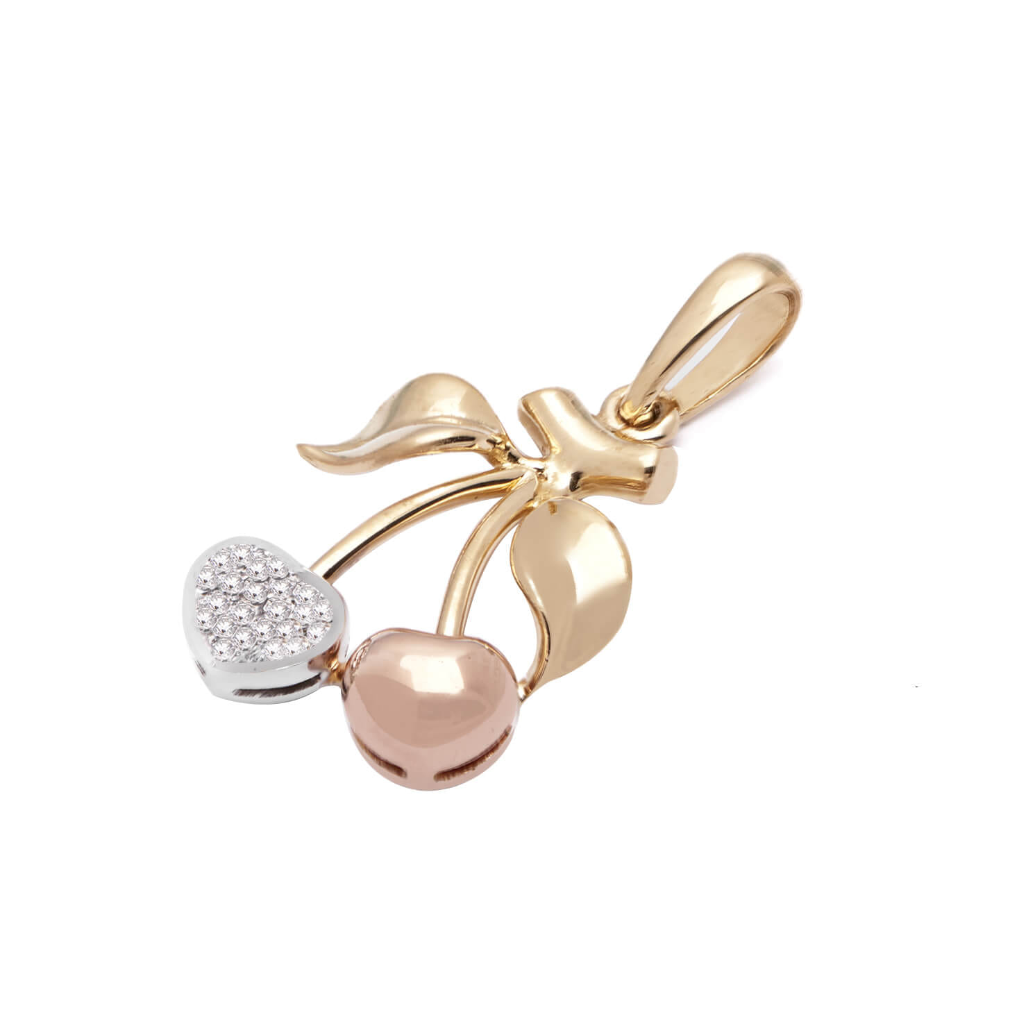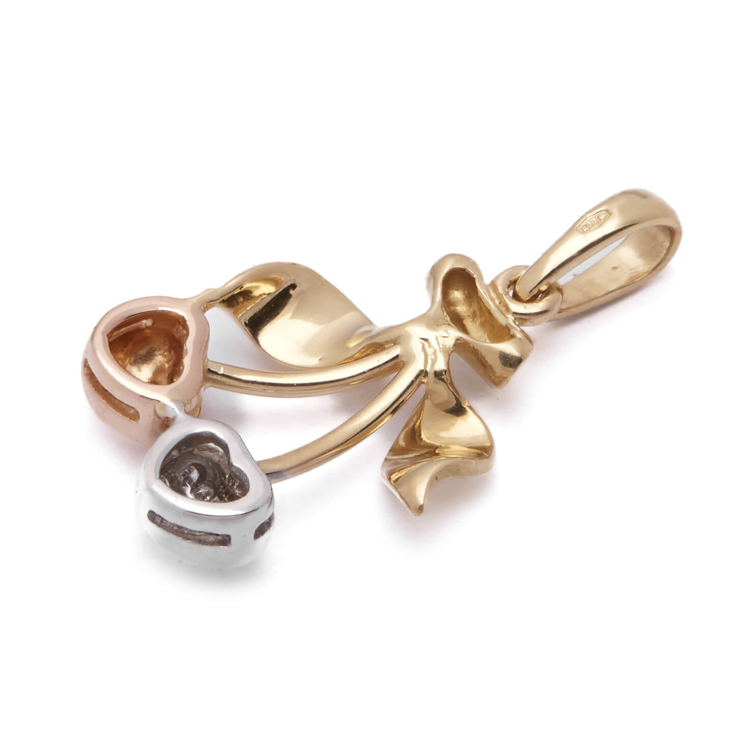 Ciondolo ciliegie in oro bianco rosa e giallo con diamanti 0,07ct tot