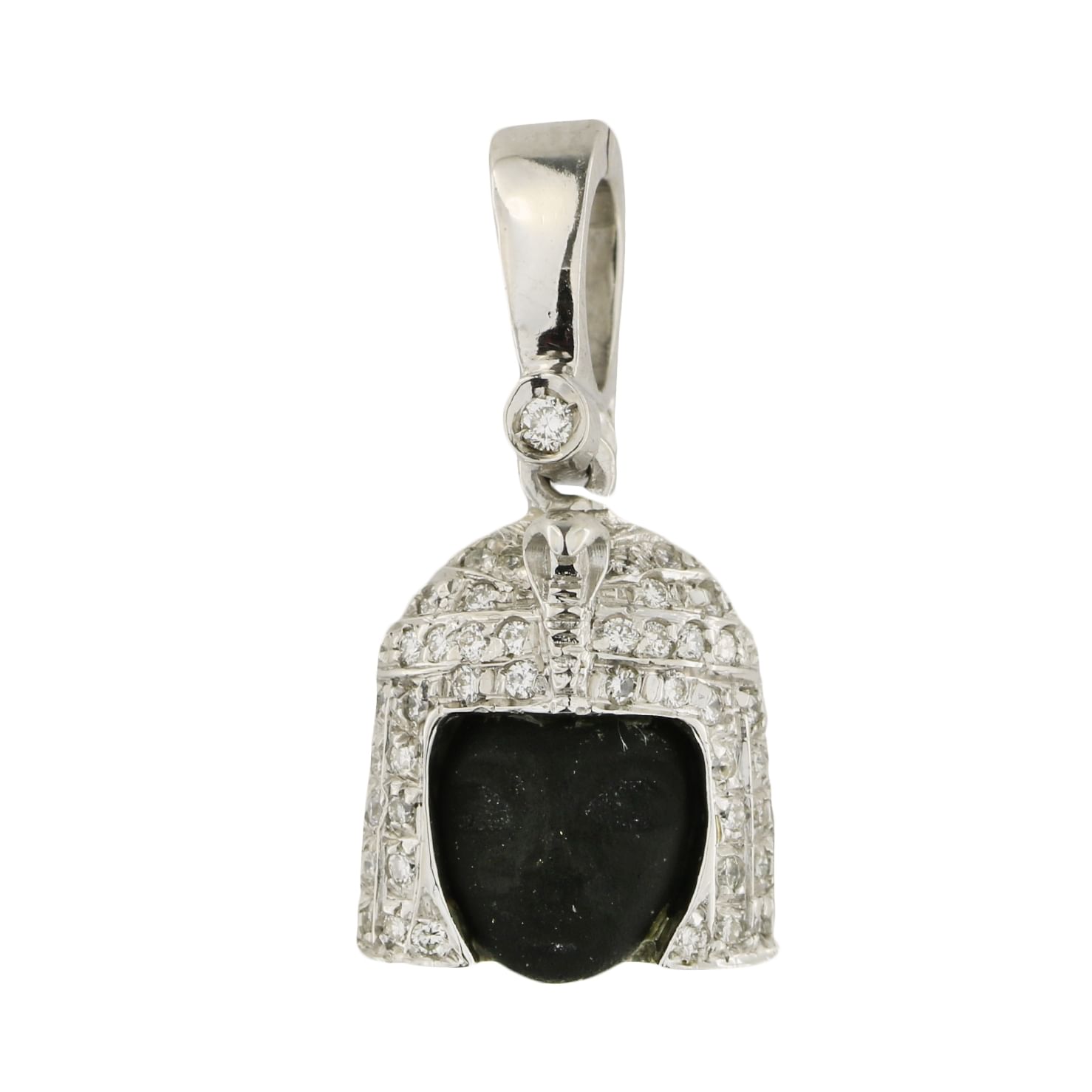 Ciondolo Cleopatra d’oro bianco 18kt con diamanti taglio round 0,24 ct e onice