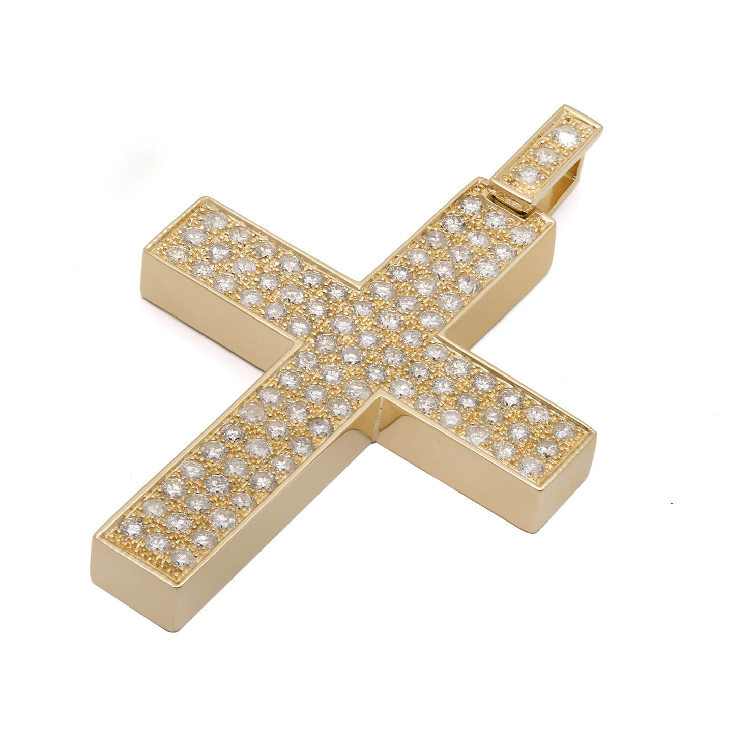 Ciondolo croce big realizzato in oro giallo 18kt e diamanti round 4,8ct