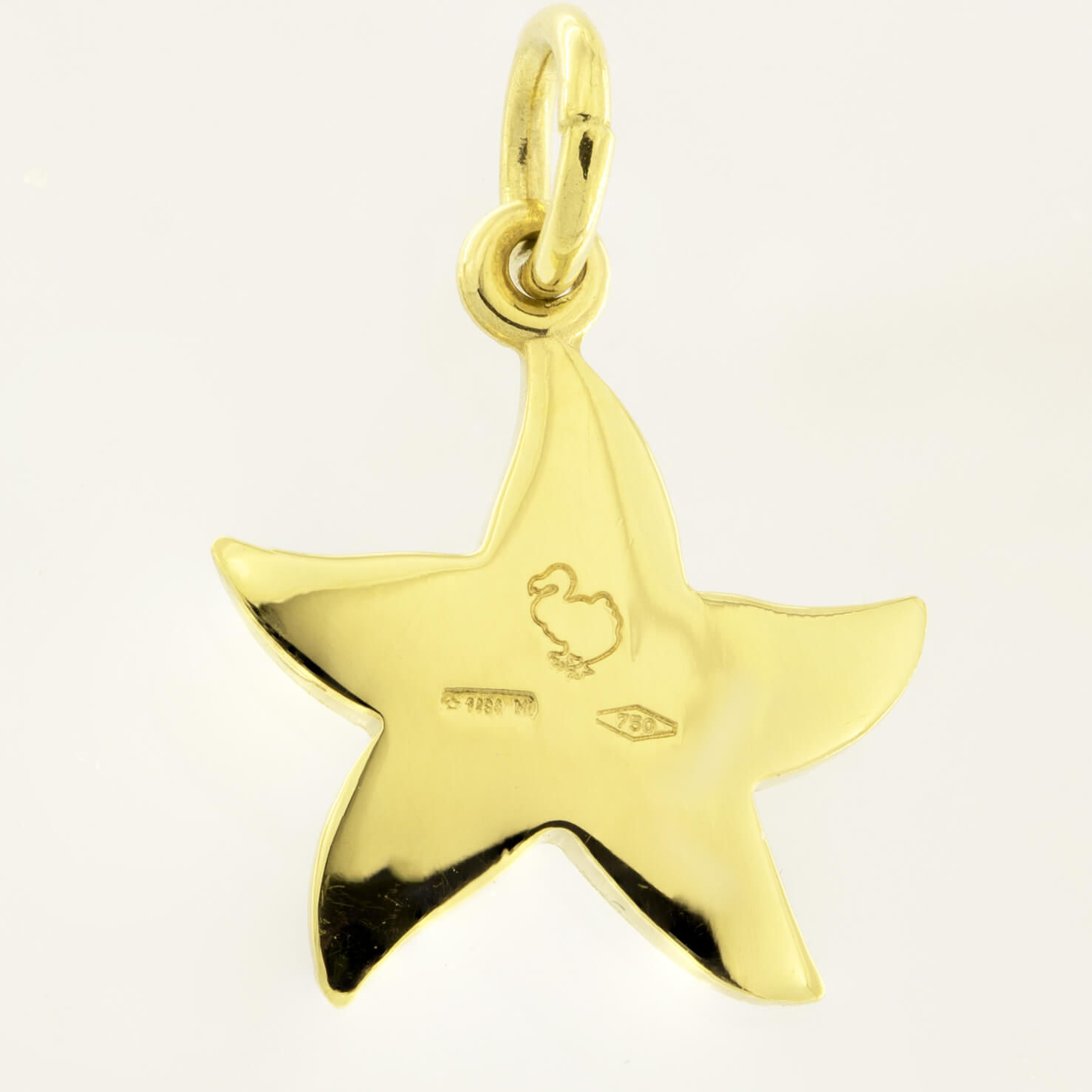 Ciondolo Dodo stella realizzato in oro giallo 18kt.Misura 1×1.8cm